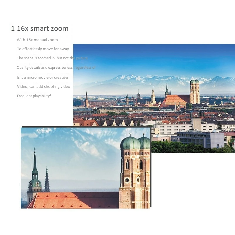 16 раз больше, чем у лигантное зум через 16 раз больше, чем у ручной зум, вы можете легко вытащить далекого декорации ближе, но в ie качество деталей выражения, независимо от того, съемка микро-пленки или креативное видео, может повысить воспроизводимость съемки видео!