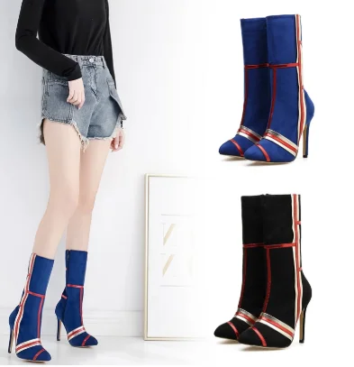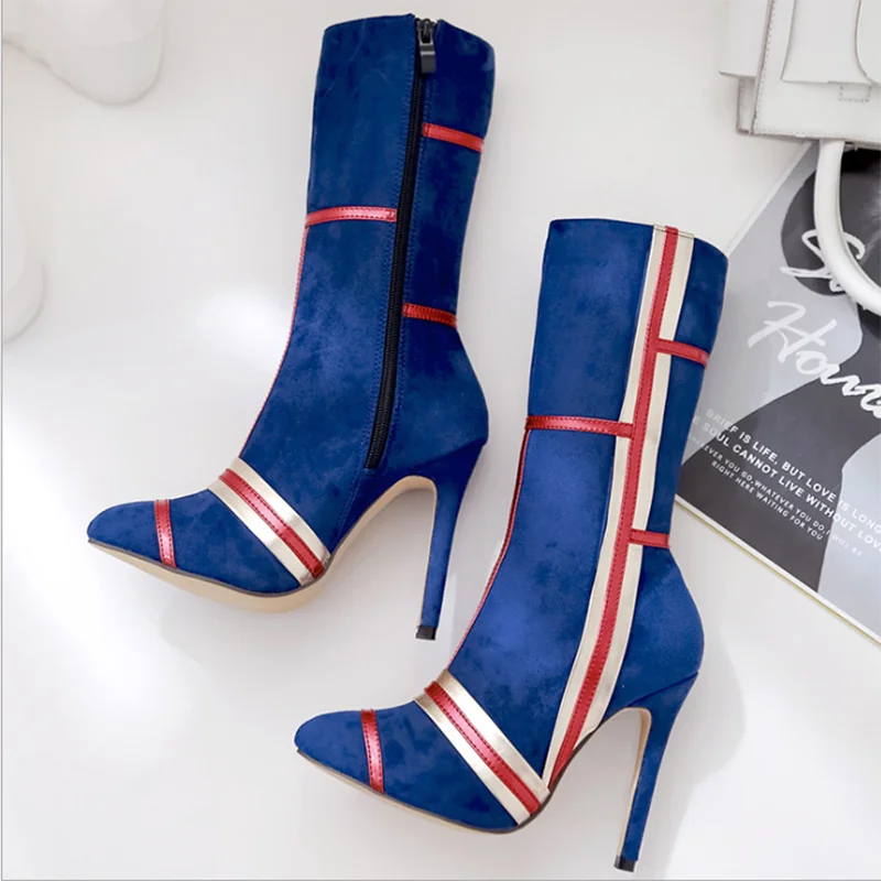 Отзывы о Для женщин роскошный дизайн голубые носки Botas 2020 пикантная обувь на тонком 11 5 см