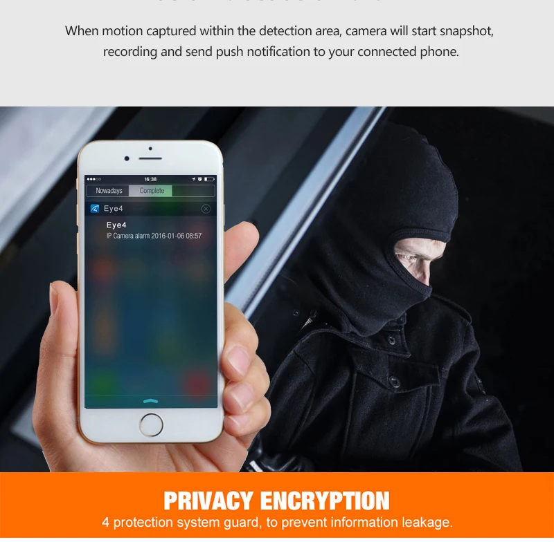 Основные характеристики:1MP/2MP 3MPIp-камера,Удаленно-Мобильный просмотр.Sopport оба беспроводныхWi-Fi 2,4 ГГцПодключение и подключение кабеля Lan.Поддержка4 пользователяПросмотр в то же время, поддержка4 камерыСмотрите на одном экране.Поддержка до128 ГБКарта памяти Micro SD/TF (не входит в розничную коробку).Сигнализация обнаружения движения, Записывайте и нажимайте Оповещение на ваш мобильный телефонДвухстороннее аудио, Снимок,Запись видео, Talkback, слушайте, просто позаботьтесь и записывайте каждый момент своей жизни независимо от того, когда и где вы находитесь, просто lauch Eye4 AppДвойной ИК-переключатель, Отличное качество ночного видения24 часа записи, даже без сети.ПоддержкаIOS,AndroidТелефон и окноПК.Подключи и работай, Легко подключить.Воспроизведение видеоФункция, не пропустите момент, который вы хотите знать.4 Защита системы защиты, для предотвращения утечки информации.
