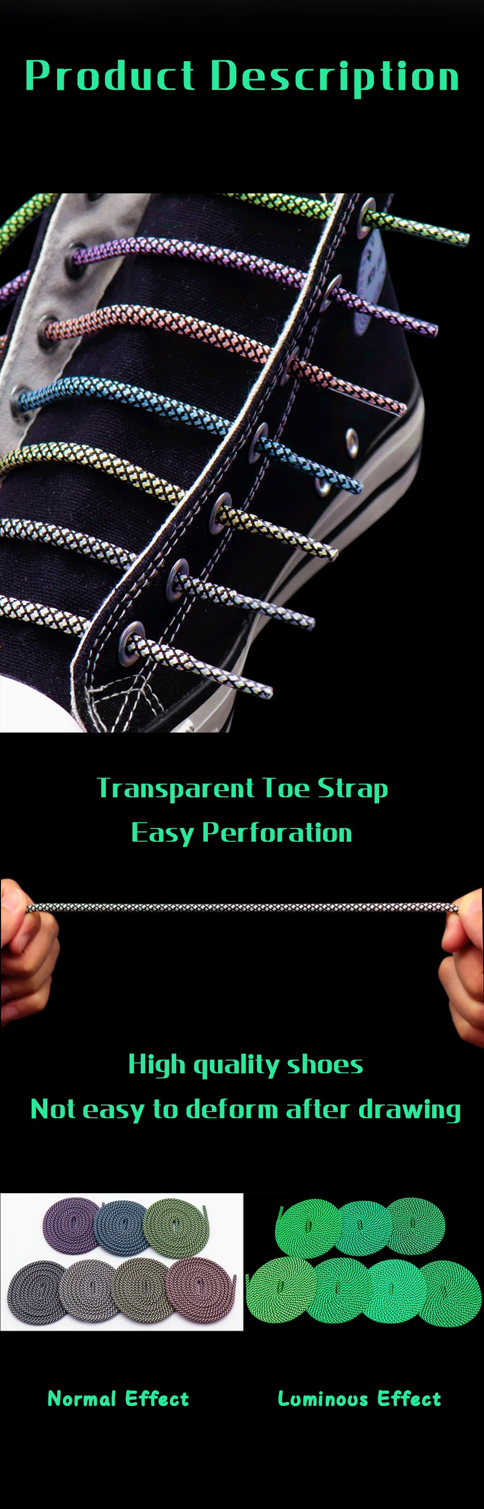 Номер товара: #1301-1307 Материал: полиэстер + светящийся материал + пластик Функция/сочетание/Применение: шнурки для обуви, шнурки для талии, веревки для шляпы и т. д. Цветовая/разноцветная комбинация: двухцветная комбинация, 7 цветов на выбор Спецификация: 60-180 см * 4,5 мм Диаметр/Ширина: 0,45 см Тип формы: круглый Головка шнурков: прозрачный пластик Вес брутто: 50 г Сертификат: Oeko-tex-100,ISO9001,SGS,CE Посылка: 1 пара/opp полиэтиленовый пакет Индивидуальные: цветовое сочетание/длина и ширина/печать логотипа, пожалуйста, свяжитесь с нашей службой поддержки клиентов