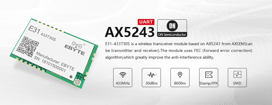 AX5243 433 МГц беспроводной приемник UART модуль приемопередатчика 30 дБм - купить