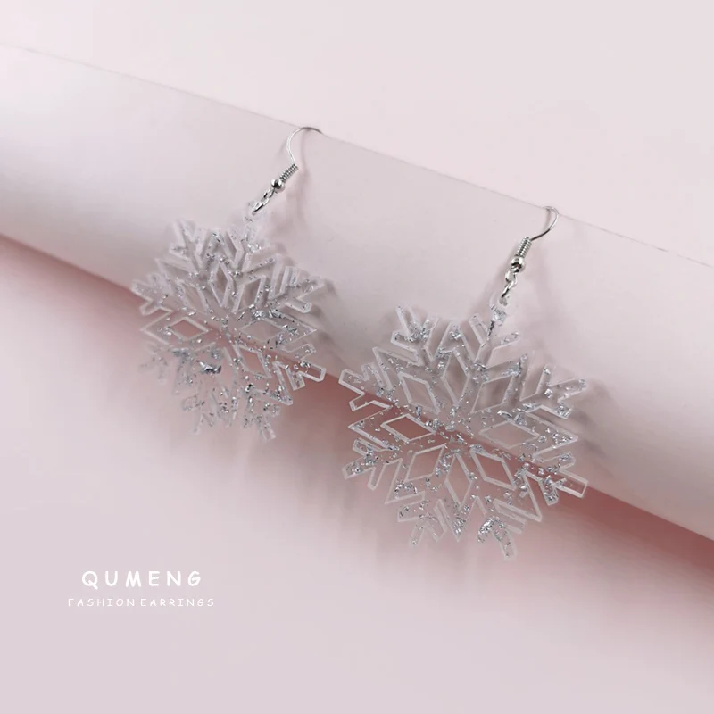 2020 модные большие прозрачные акриловые длинные Подвесные серьги со снежинками и - купить