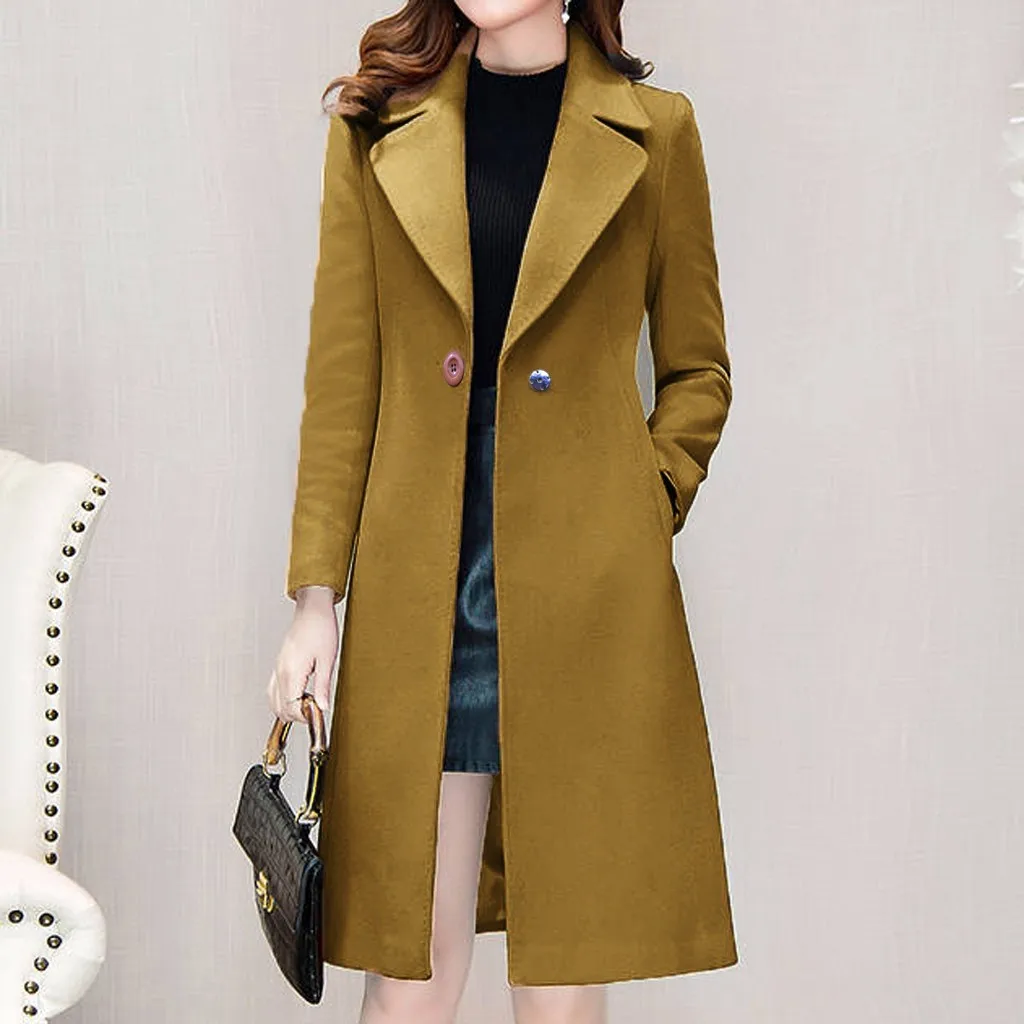 Купить Женское повседневное шерстяное пальто однотонное с длинным рукавом и двойным