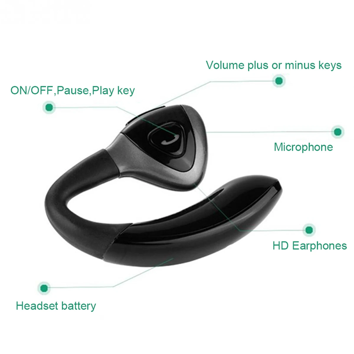 1 * Earphone (Main unit & hook-shaped battery, detachable design)