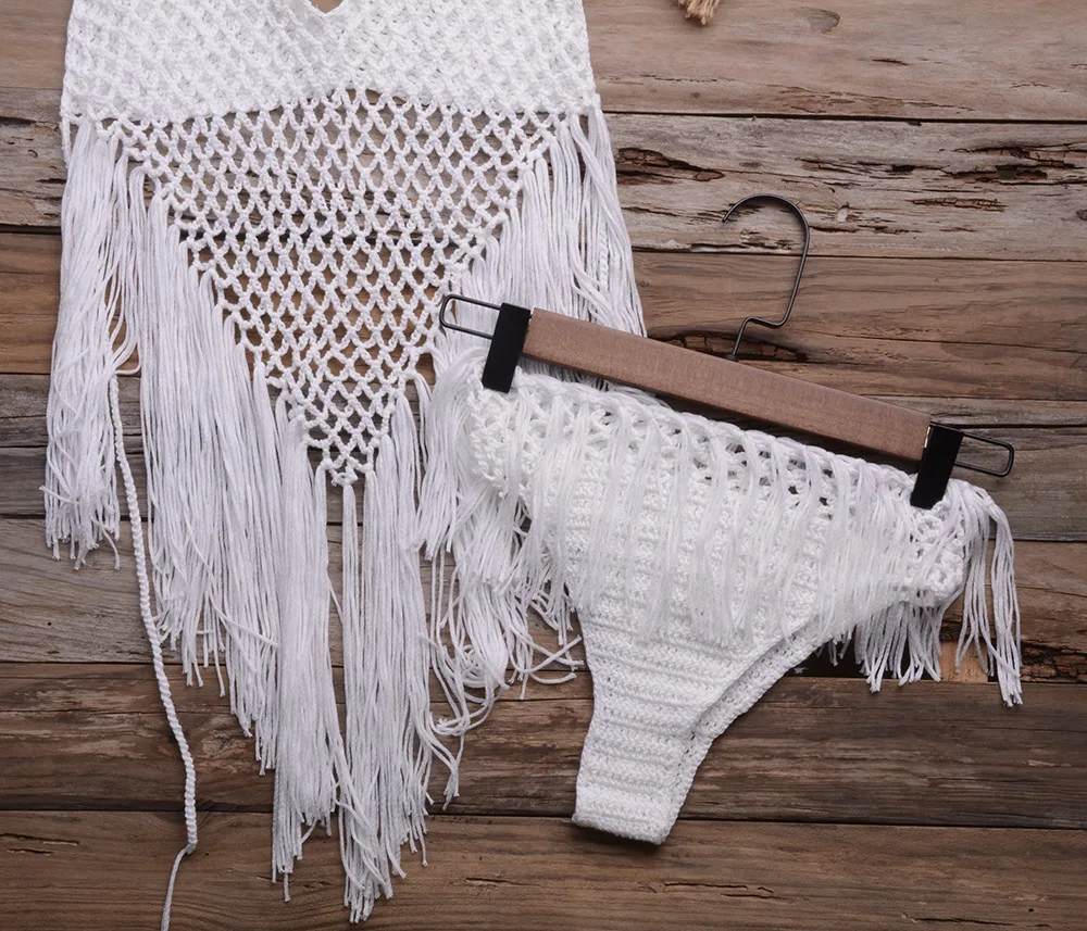 Сексуальный женский комплект бикини с кисточками Женский трикотажный купальник - купить