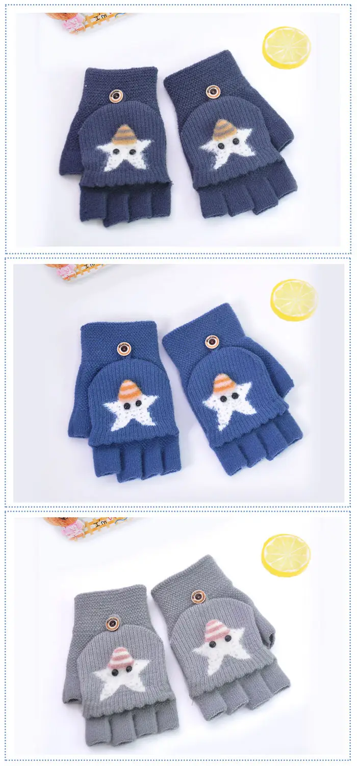 Купить От 7 до 14 лет Детские Зимние перчатки без пальцев детские милые теплые мягкие