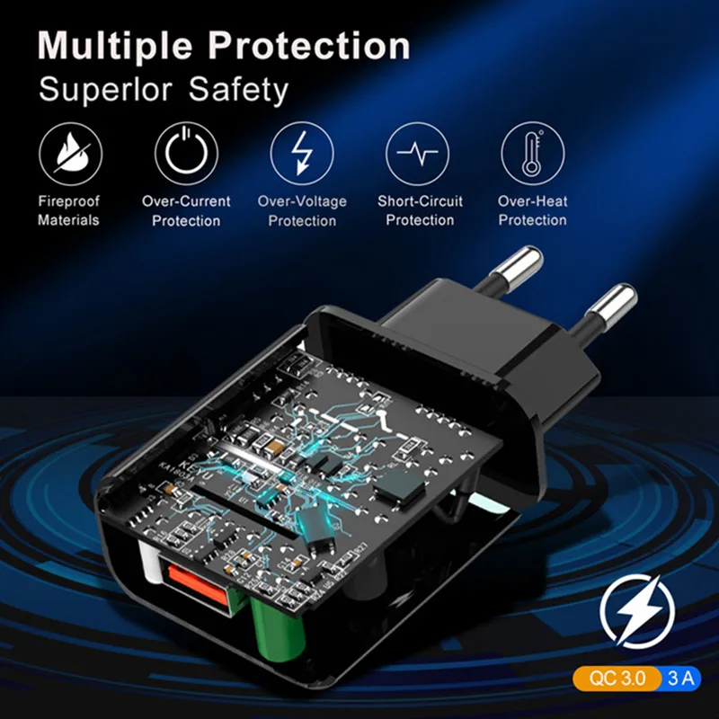 1. 1-Ports USB EU Wall Plug Charger: Universal Compatible: for iphone Phone for All Android Phone.2.Quick Charge QC 3.0 Fast Charging Speed as the Wall Plug Charger.3. 1M 1.5M 2M Long USB Type-C Cable Quick Charge High-Speed Charging And Data Sync Strong Cords .