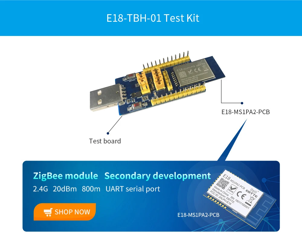 CH340G Zigbee модуль USB тестовая плата комплект 2,4 GHz 20dBm Беспроводной RF модуль EBYTE E18-TBH-01 размер 50,5*25 мм USB тестовая плата комплект