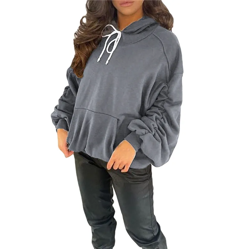 ОписаниеЖенские повседневные свободные толстовки, с рюшами, с длинным рукавом, зимние теплые толстовки с капюшоном, топ с карманомОсобенности: