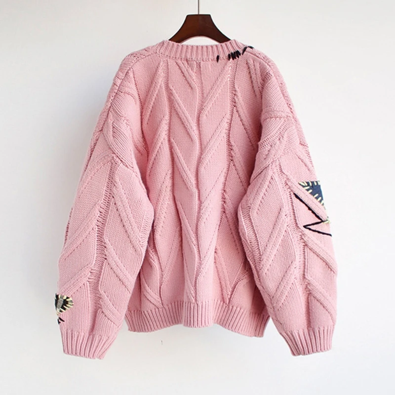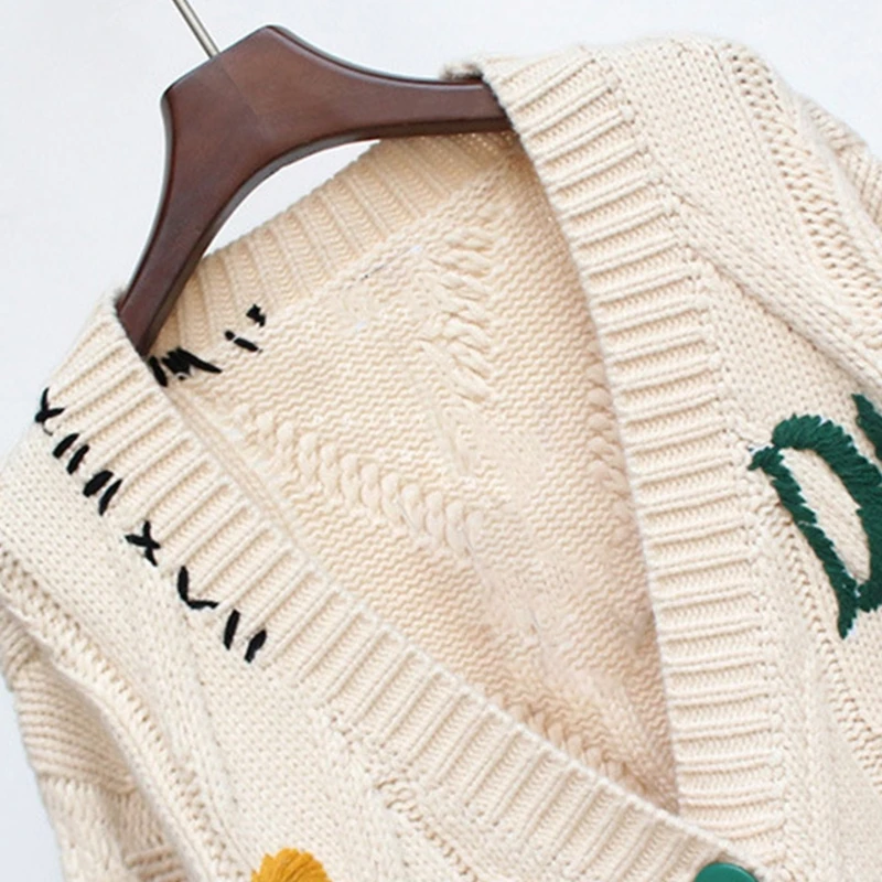 Отзывы о Женский кардиган с длинным рукавом разноцветный свитер пуговицы пальто вышивкой
