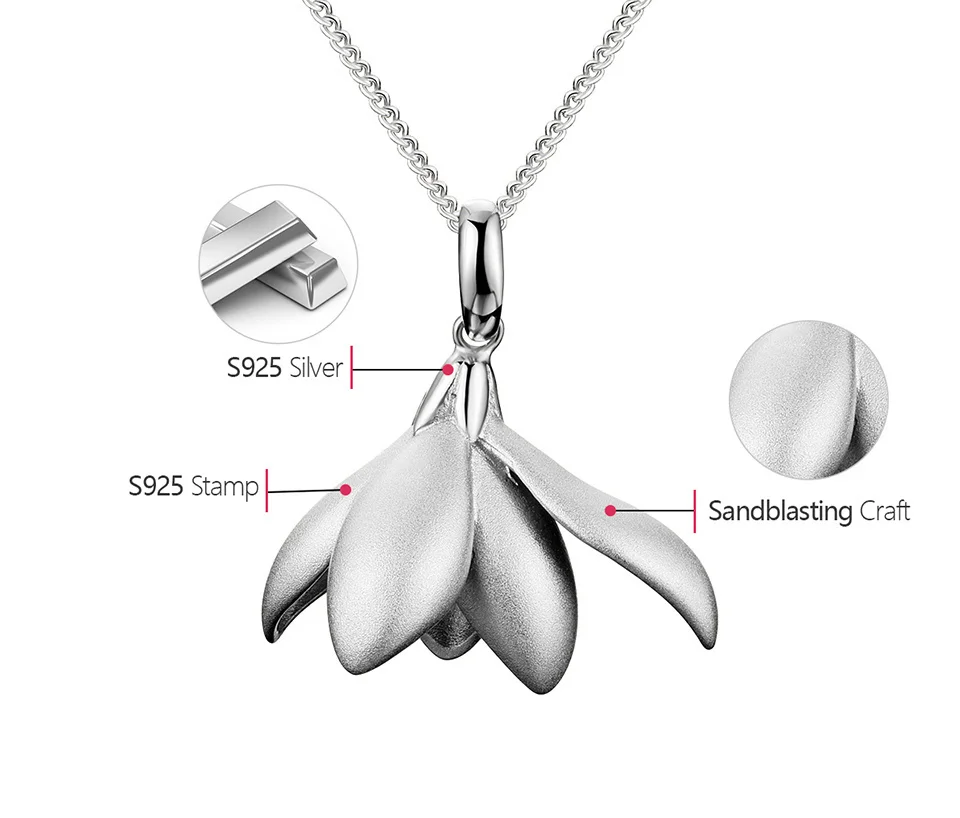 Отзывы о Подвеска для женщин в форме магнолии из серебра 925 пробы выполненная вручную
