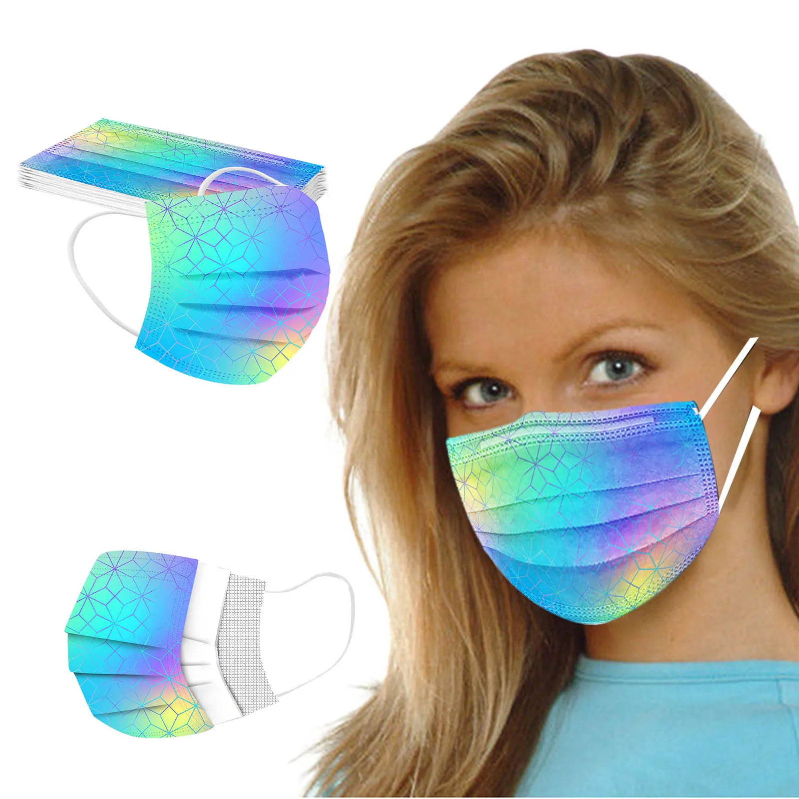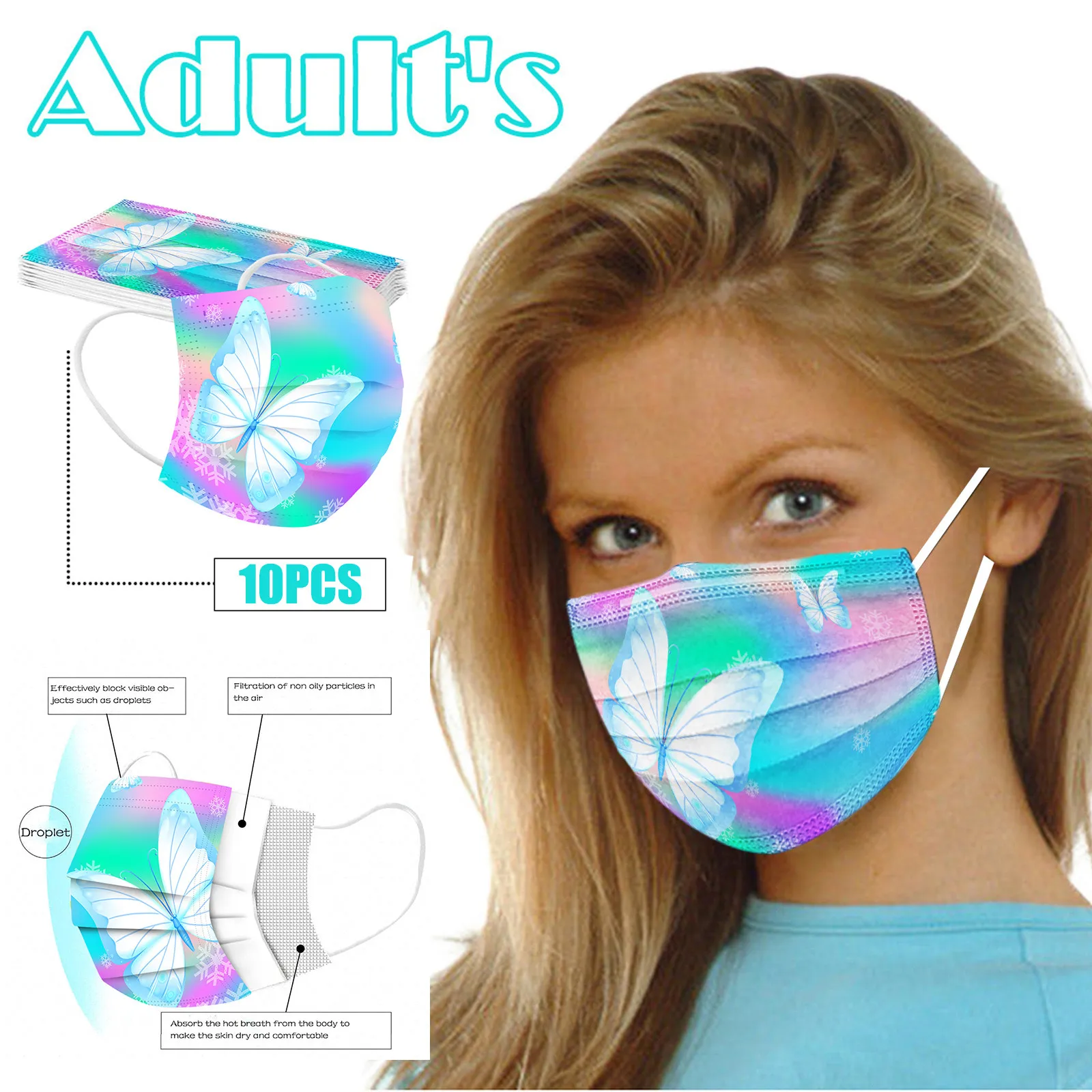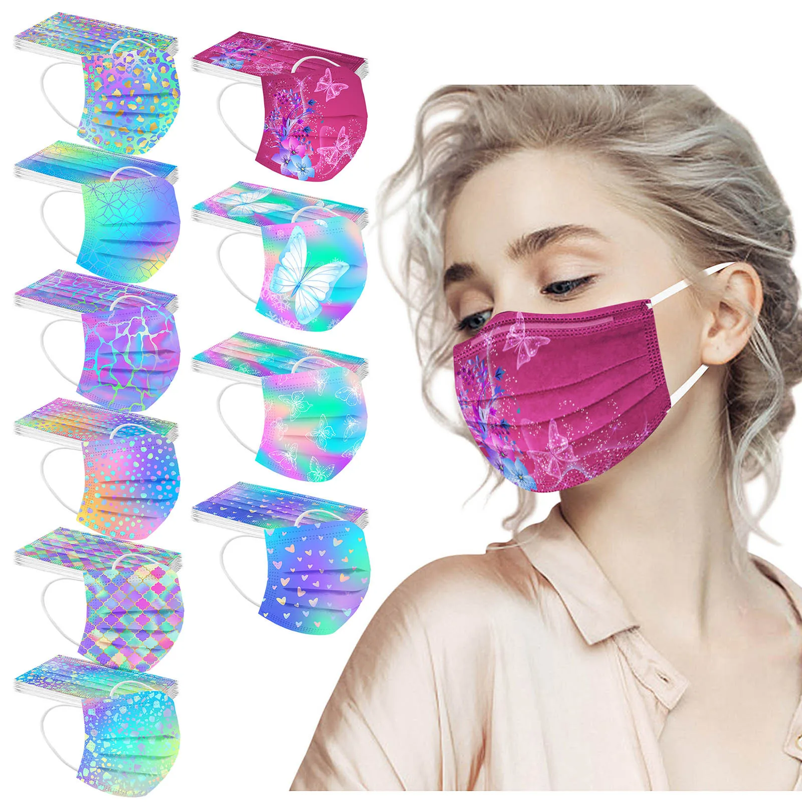 Купить Маска для лица с принтом бабочек и тай-дай одноразовая цветная 3 слоя 10-100 шт. -