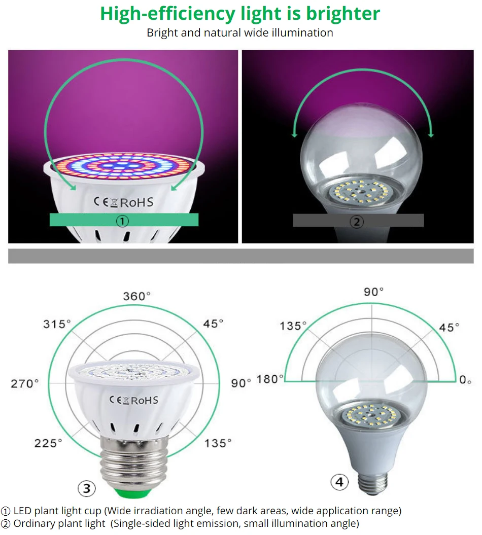 Светильник фитолампа полного спектра E27 E14 MR16 для гидропонных систем 220 В - купить - купить