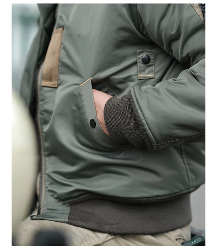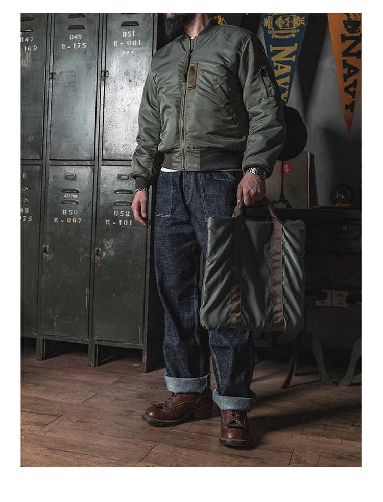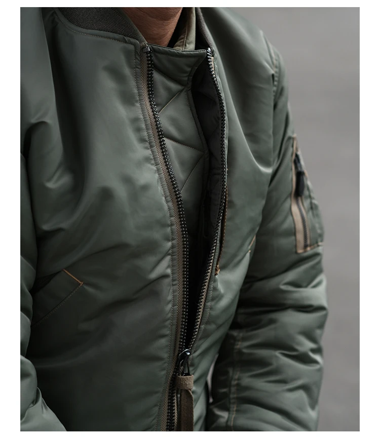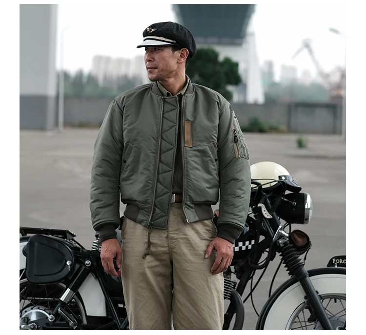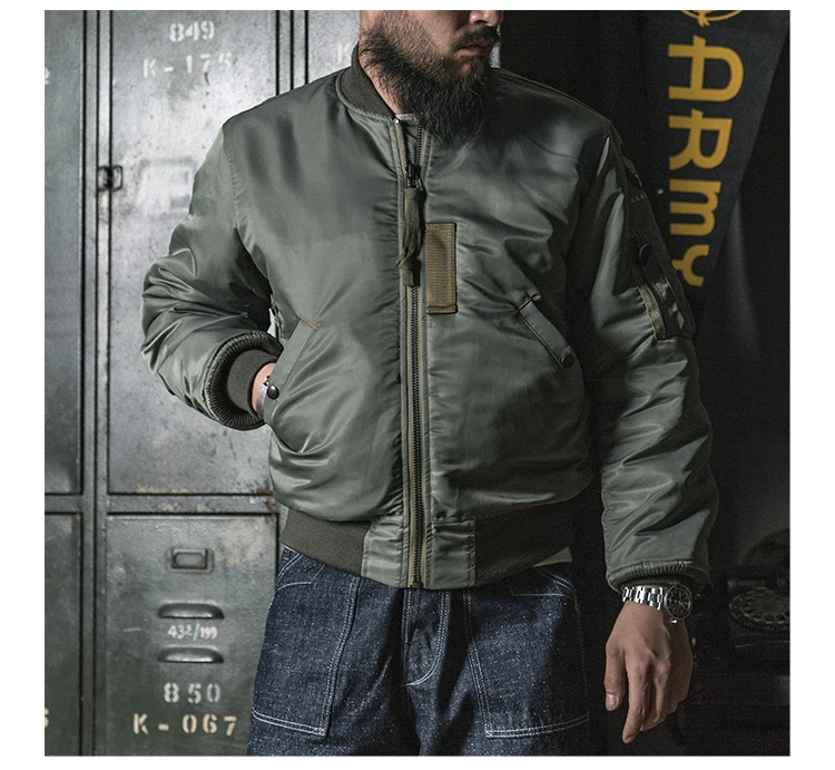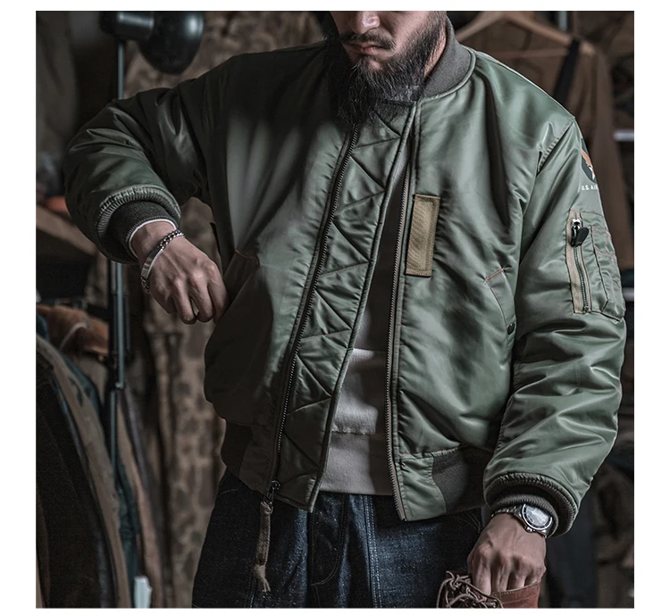 Это репродукция первый вариант MA-1 летная куртка, которая была введена в 1950s и становится летная куртка из ВВС США. Эта модель довольно редка на рынке. Эта Полетная куртка MA-1 полностью воспроизводится в летной куртке 1955 MA-1 (спецификации. MIL-J-8279). Он изготовлен из ткани, изготовленной на заказ, которая достоверно повторяет цвет и характеристики селадона из высокопрочного нейлонового материала, изготовленного из этого материала. Полностью верен оригинальной версии в деталях, даже идентификация размера на этикетке соответствует различному запасу NO.
