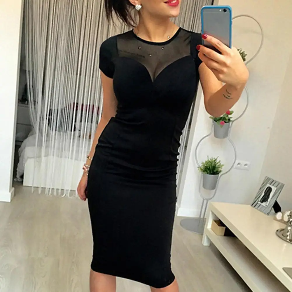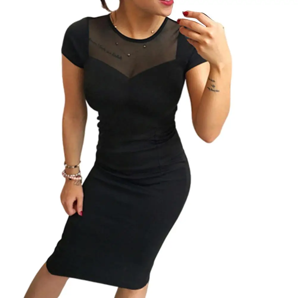 Купить Сексуальное женское Сетчатое платье до колен с коротким рукавом и прострочкой по