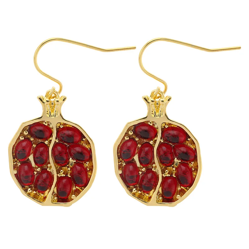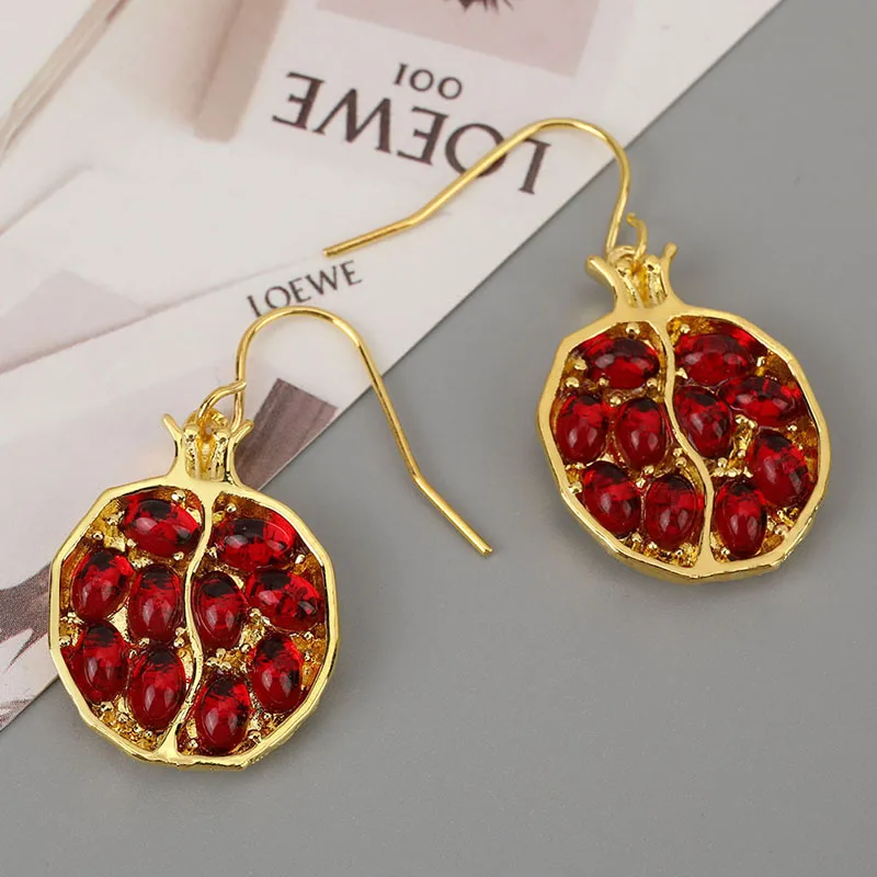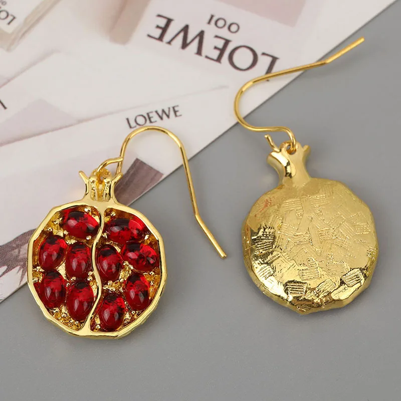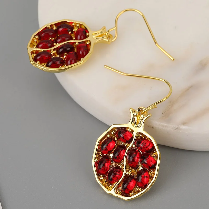 Купить Винтажные висячие серьги в виде фруктов свежих красных гранатов индивидуальные