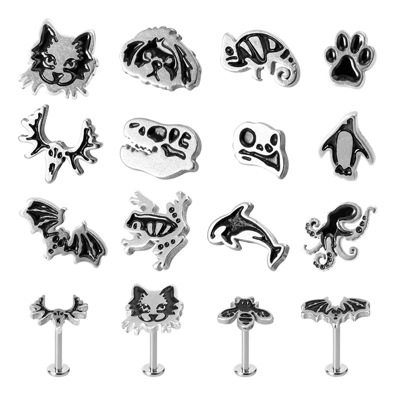 1 шт., Черные Животные, нержавеющая сталь, шпильки для губ, Лабрет, кольца для губ, пирсинг Монро, женские 16 г, хрящи, пирсинг, серьги, ювелирные изделия