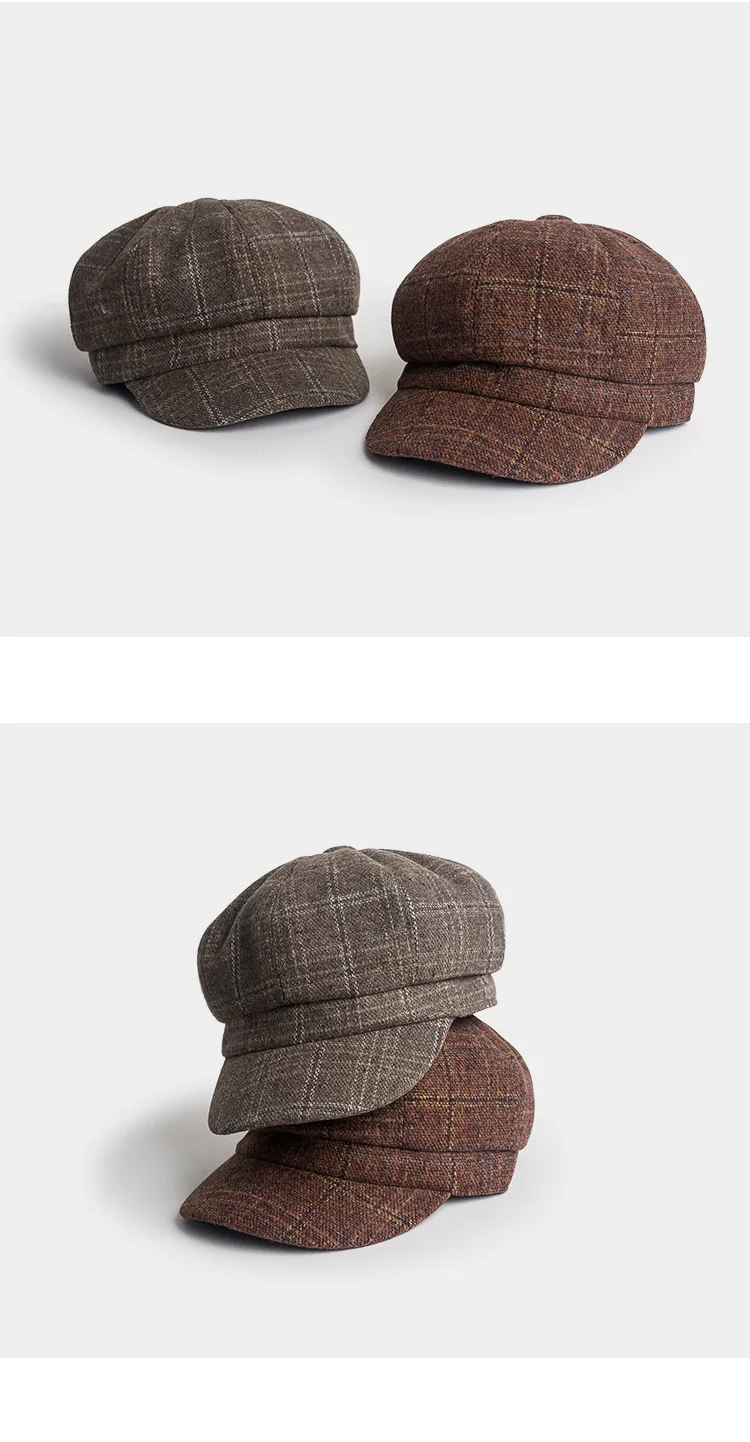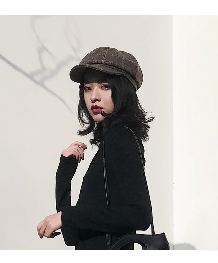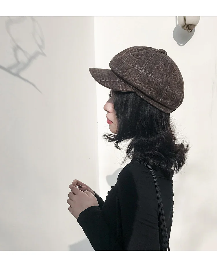 Женская шапка COKK осенне-зимняя в клетку берет газетчика Корейская - купить