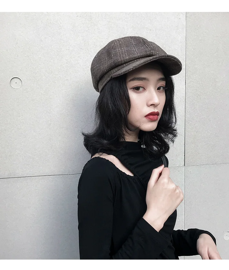 Купить Женская шапка COKK осенне-зимняя в клетку берет газетчика Корейская