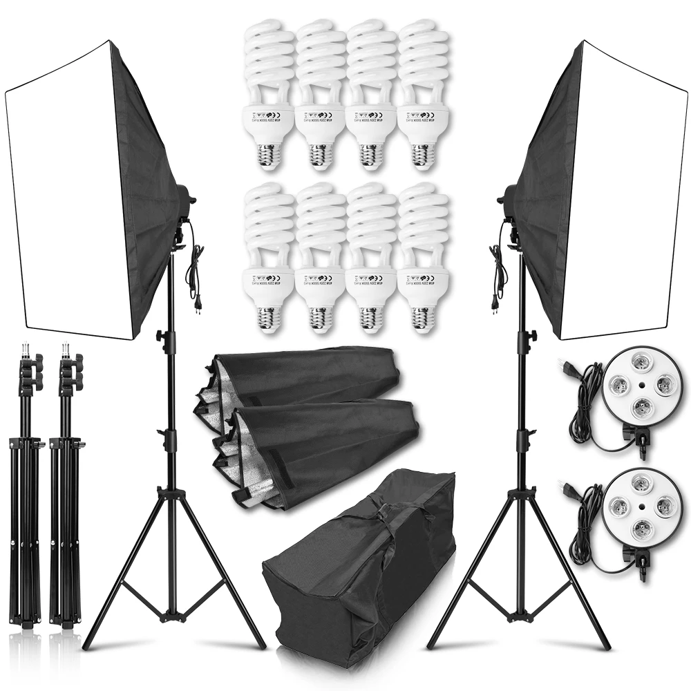 50x70CM Softbox Lighting Kit Photography Continuous Light Soft Box E27 4Lamp Holder 2m Stand Tripod For Photo Studio Vedio - купить по - купить