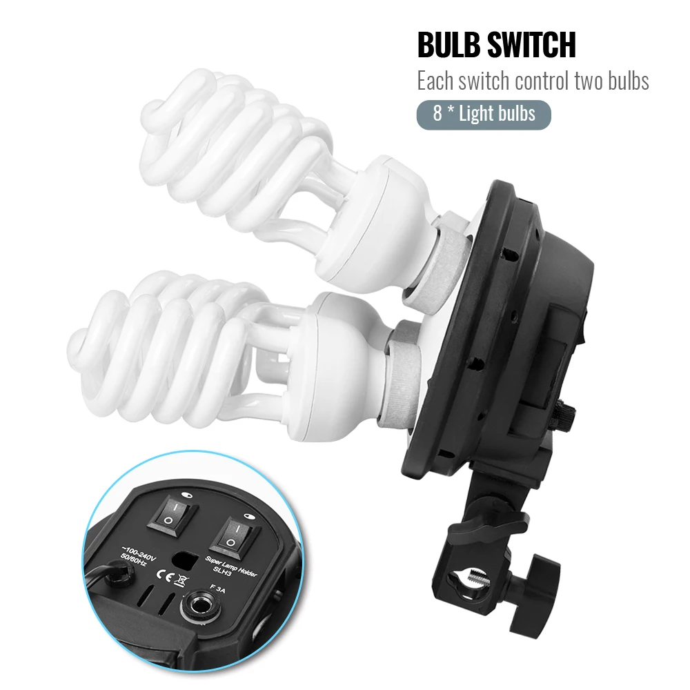 ОсобенностиНазвание продукта: комплект освещенияСветильник Материал стойки: алюминиевый сплавРазмер софтбокса в разложенном виде: 50x70 см (Ш x В)Сложенный Софтбокс Длина: 57 смСветильник, высота стойки: 75-200 смE27 4 гнезда лампы (не включая лампу)E27 4 гнезда Напряжение лампы: 220-240 ВE27 4 розетки Мощность лампы: 800 ВтТип лампы: 45 ВтЭто идеальный комплект освещения софтбокса для студийной фотосъемки.Посылка включает в себя:A:1x2 м студийный светильник для фотосъемки1 складной софтбокс1x E27 4 розетка лампы (не включая лампу)B:2x2 м студийный светильник для фотосъемки2x складной софтбокс2x E27 4 гнезда лампы (не включая лампу)C:2x2 м студийный светильник для фотосъемки2x складной софтбокс2x E27 4 Торцевая лампаСветильник 8x 45 Вт1x сумка для переноски
