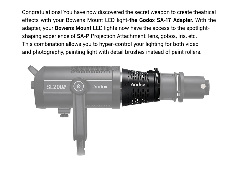 Адаптер крепления Godox SA 17 Bowens для объектива проекции P fr светодиодная лампа - купить