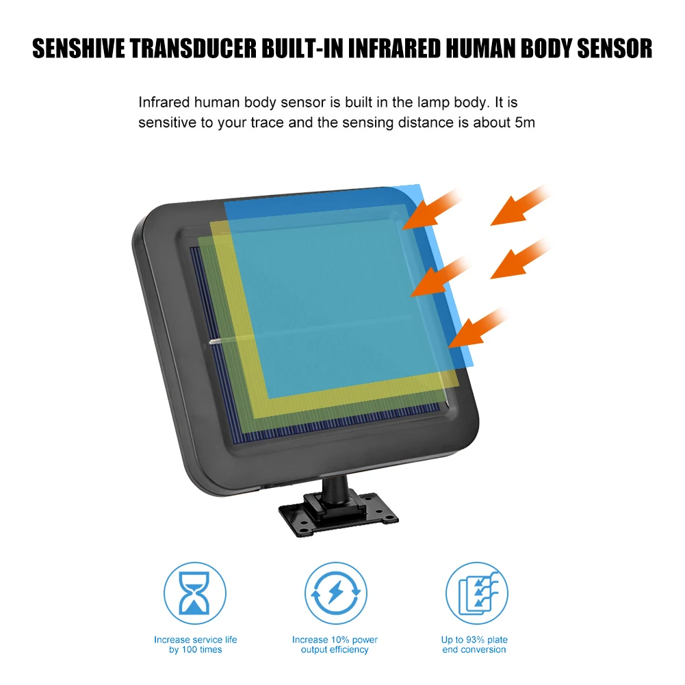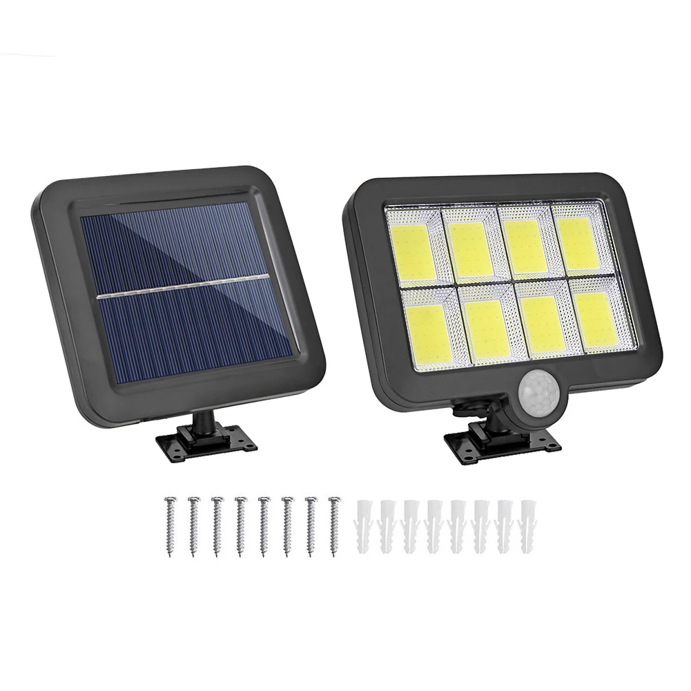 СВЕТОДИОДНЫЙ Уличный настенный светильник на солнечных батареях, водонепроницаемый PIR датчик движения, освещение садового парка светильник для дома, крыльца, забор, подъездная дорога, уличная декоративная лампа Характеристика: Легко установить, просто закрепите изделие на стене с помощью винтов. Солнечный источник питания: солнечные наружные лампы используют энергию солнца для освещения ночью. Светильник не включается при включении выключателя в течение дня. Только когда переключатель включается ночью, свет высокой яркости может быть получен, когда датчик обнаруживает тело человека. IP65 водонепроницаемая, термостойкая Солнечная лампа, подходит для большинства видов погоды. Подходит для сада, двора, прохода, крыльца или подъездной дороги. Его можно использовать в помещении. Продукт оснащен 5 м/16,4 фута длинной солнечной панелью с сильной яркостью COB. Спецификация: Материал: пластик Солнечная панель: высококачественный поликремний, 5,5 В, 1 Вт Цвет: черный Мощность Потребляемая мощность: 1,5 W Функция: индукция человеческого тела + пульт дистанционного управления Люмен: 1000 лм Расстояние срабатывания: 5 м-8 м/16,4-26,24 ФТ Время работы: зарядка в течение 6 часов в дневное время и работа более 10 часов в ночное время Способ установки: сверление отверстий и подвешивание на стене Батарея: Встроенный 18650 литиевая батарея Батарея, 3,7 V 1800 мА-ч Режим зарядки: автоматическая зарядка солнечной панели Количество COB: 120COB, 160COB Режимы работы: A 3 режима: 1. Режим датчика: вечером, когда люди приходят, светильник включен. В тех случаях, когда люди уходят, он будет светильник вверх s светильник ly. 2. Управление освещением: ночное освещение, без освещения в течение дня. 3. Он может быть ярким днем и ночью, без индукции человеческого тела. B 1 режим: Режим датчика: вечером, когда люди приходят, светильник включен. В тех случаях, когда люди уходят, он будет светильник вверх s светильник ly. Примечание: 1. Из-за различных настроек монитора и светильник эффект, фактический цвет элемента может быть s светильник ly отличается от цвета, представленного на снимках. Спасибо! 2. Возможны отклонения в 1-3 см вследствие измерений вручную.