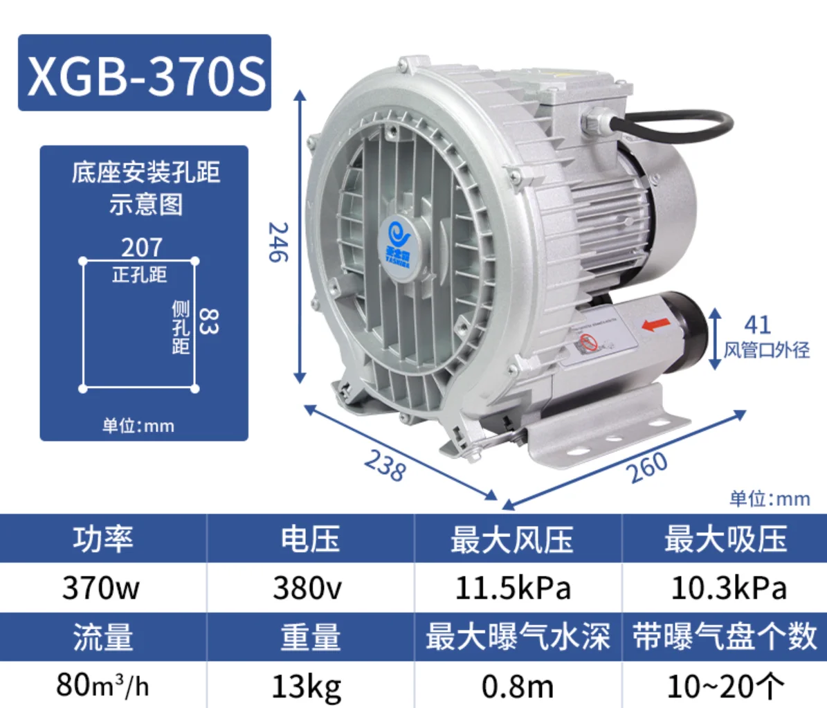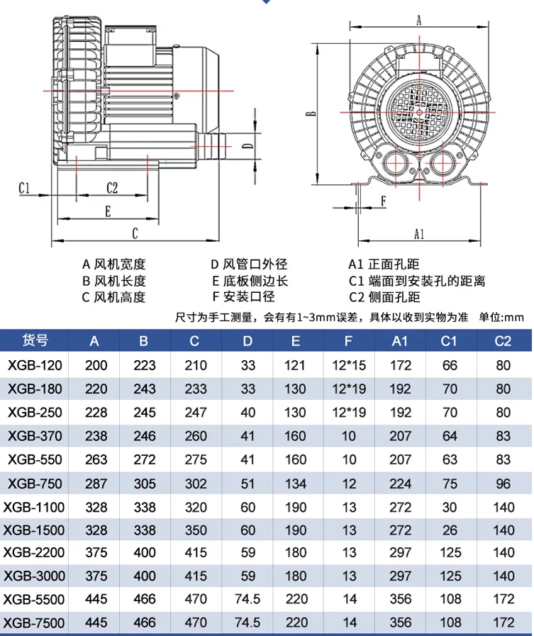 Отзывы о Мощный центробежный вентилятор XGB с высоким напором мощностью 250W или 370W для AC220V/380V