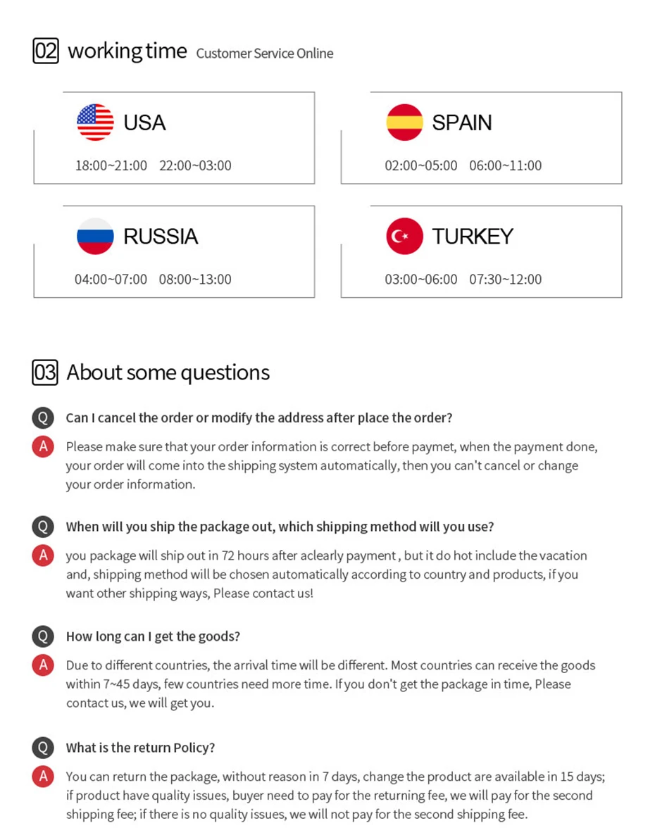 2. Ваше удовлетворение-наша главная забота. Пожалуйста, свяжитесь с нами, чтобы лучше решить любую проблему, прежде чем оставлять нейтральные или негативные отзывы.