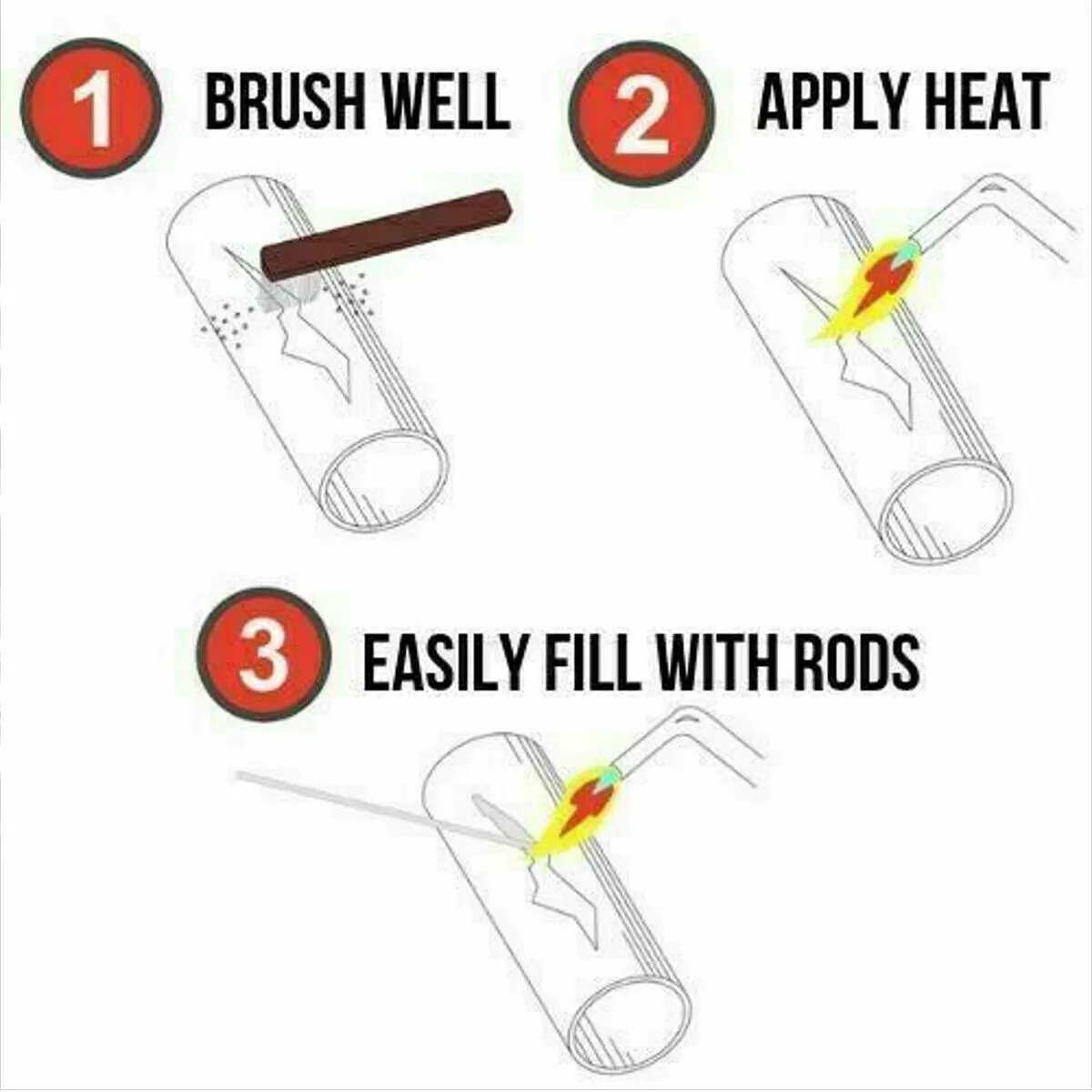* Нет необходимости в порошковый припой-Вам не нужно использовать другой порошковый флюс с алюминиевым сплавом в качестве сварочного сердечника и покрытия в качестве солевого основания. Очень удобно и легко сварить.