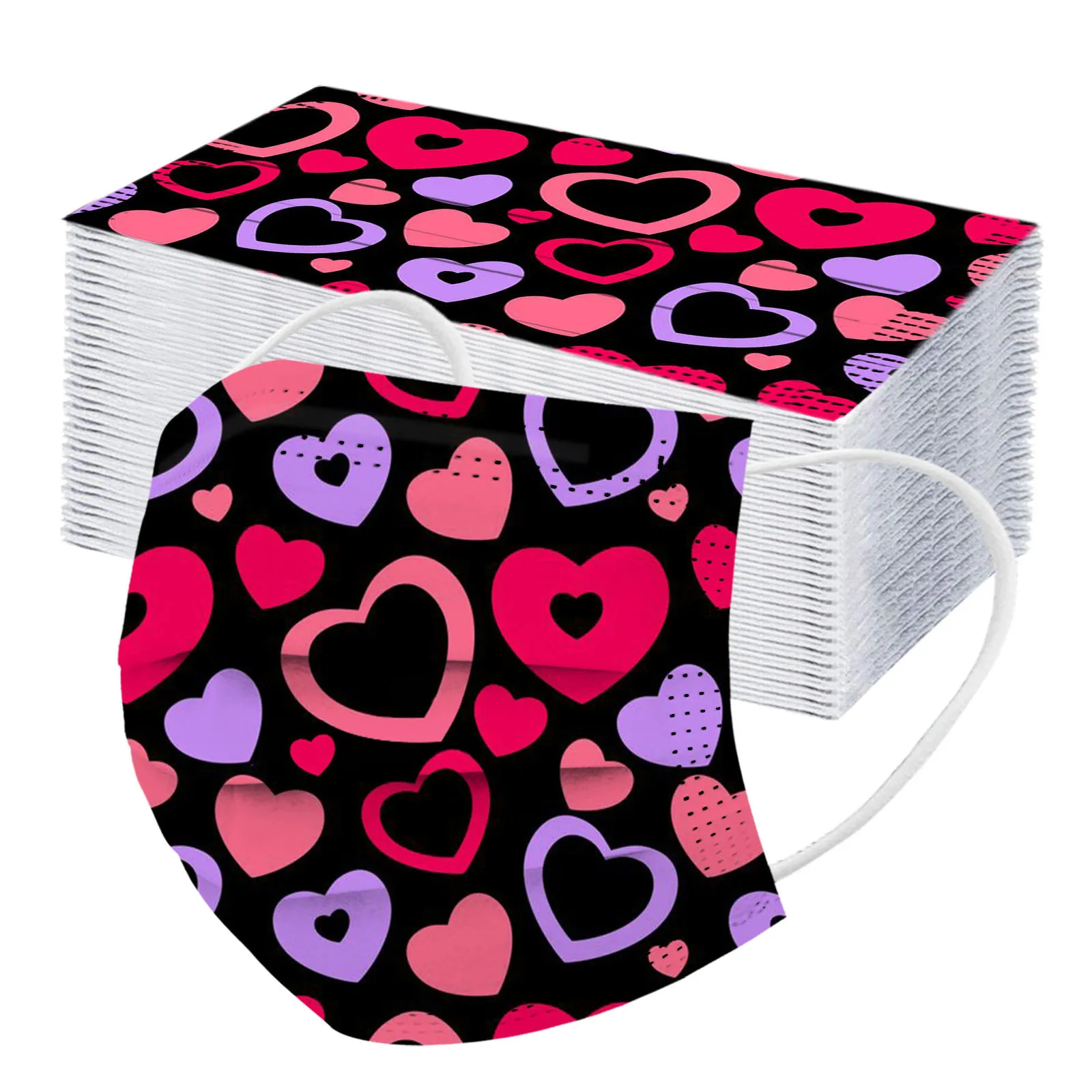 50 шт взрослых одноразовые День Святого Валентина Сердца 3Ply защитная маска для лица