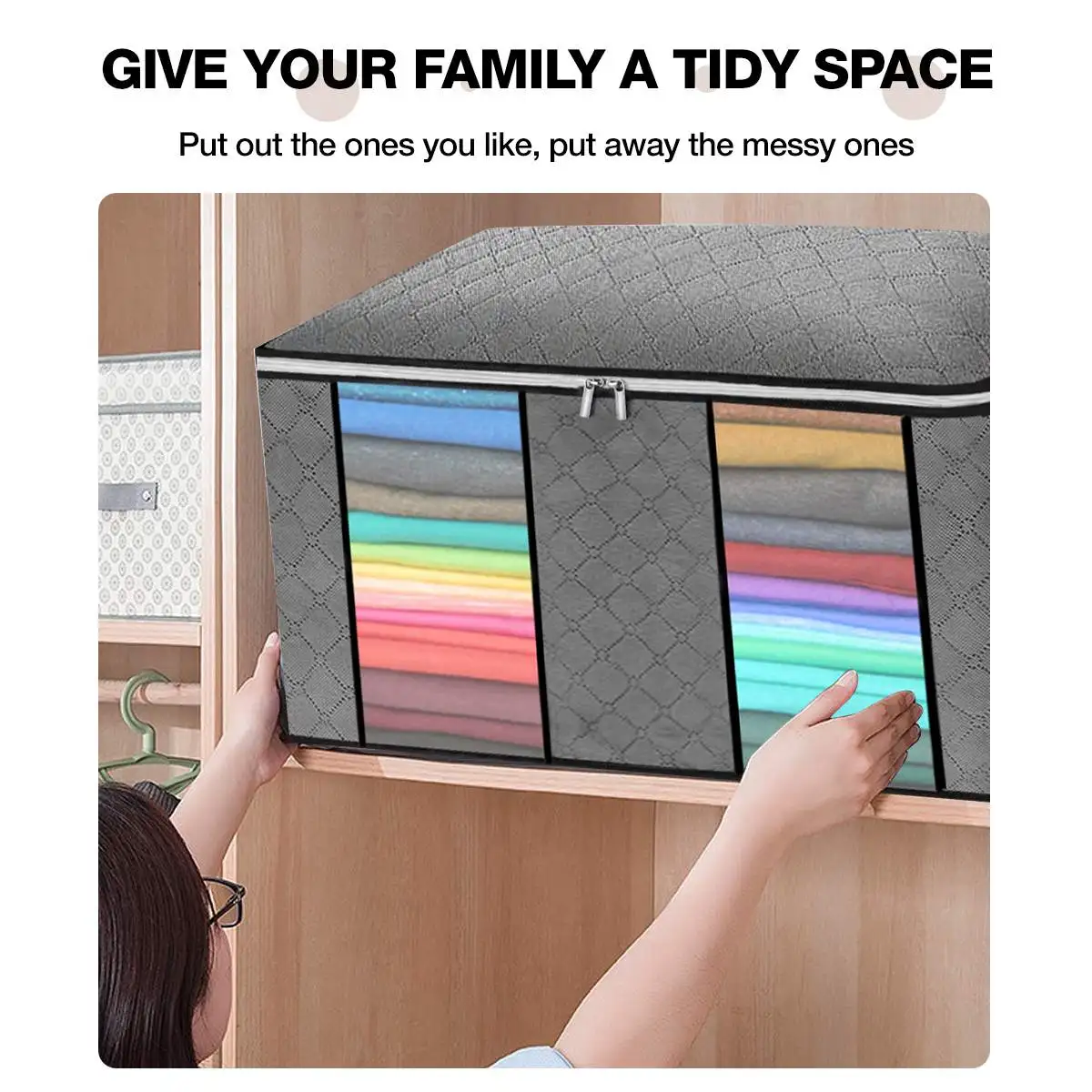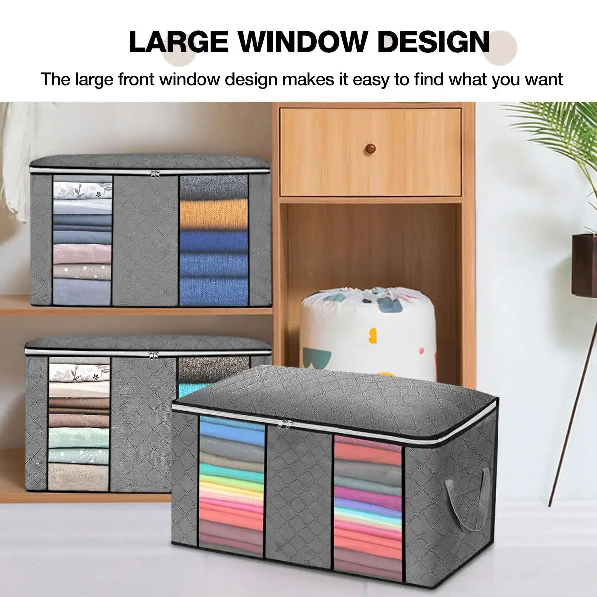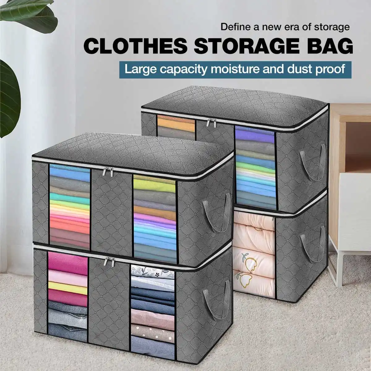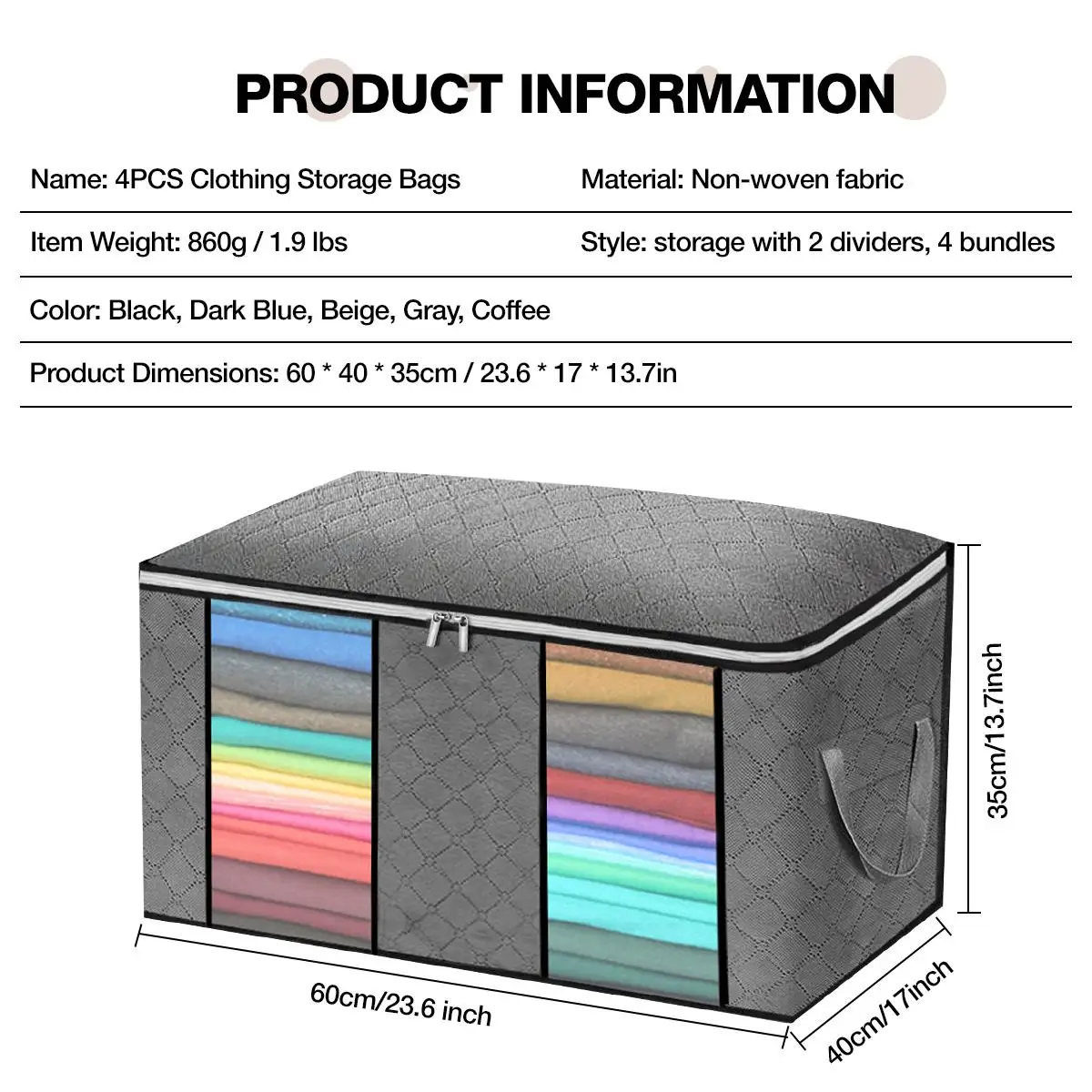 【 Хранилище большой емкости 】Сумка для хранения органайзера 4 шт., размер каждой сумки 23x16,9x13,7 дюймов. Емкость 90 л. Вместительная сумка для хранения может держать покрывало, одеяла, подушки, куртки или другие предметы одежды.