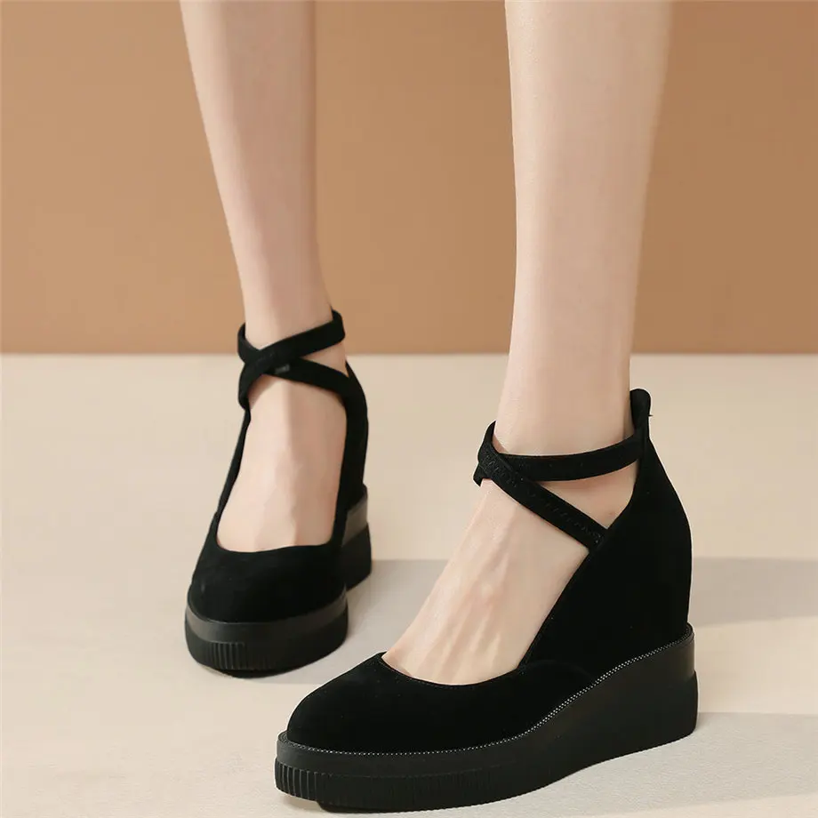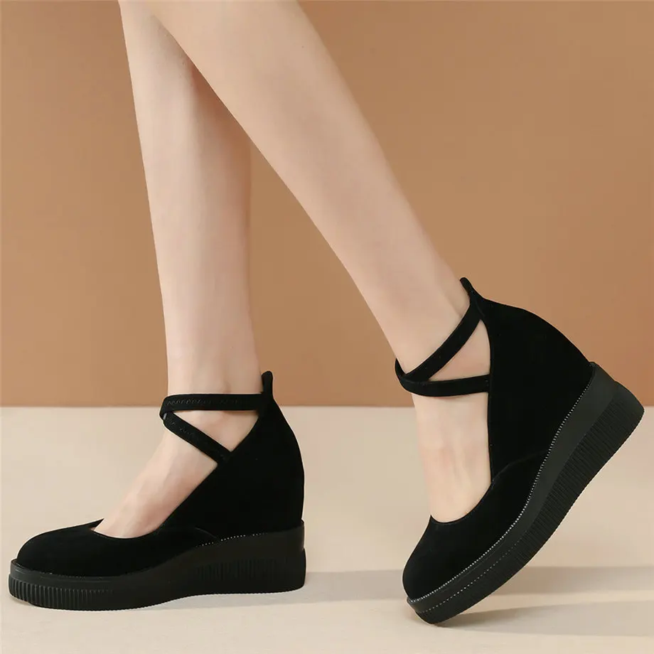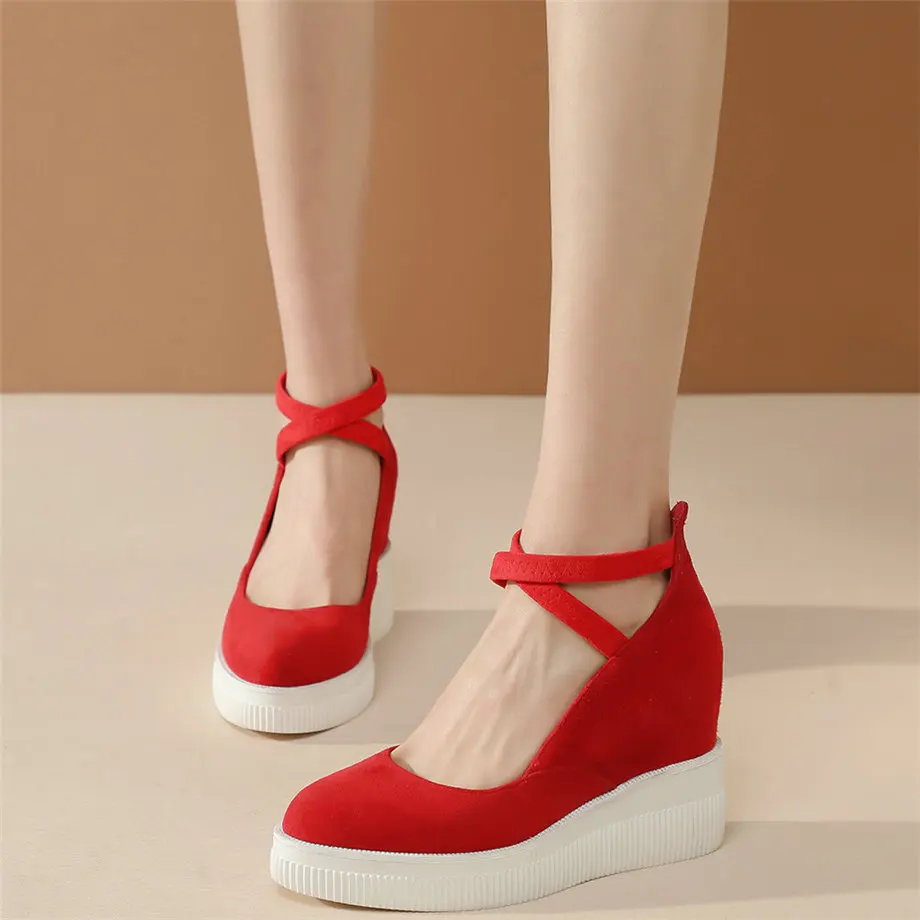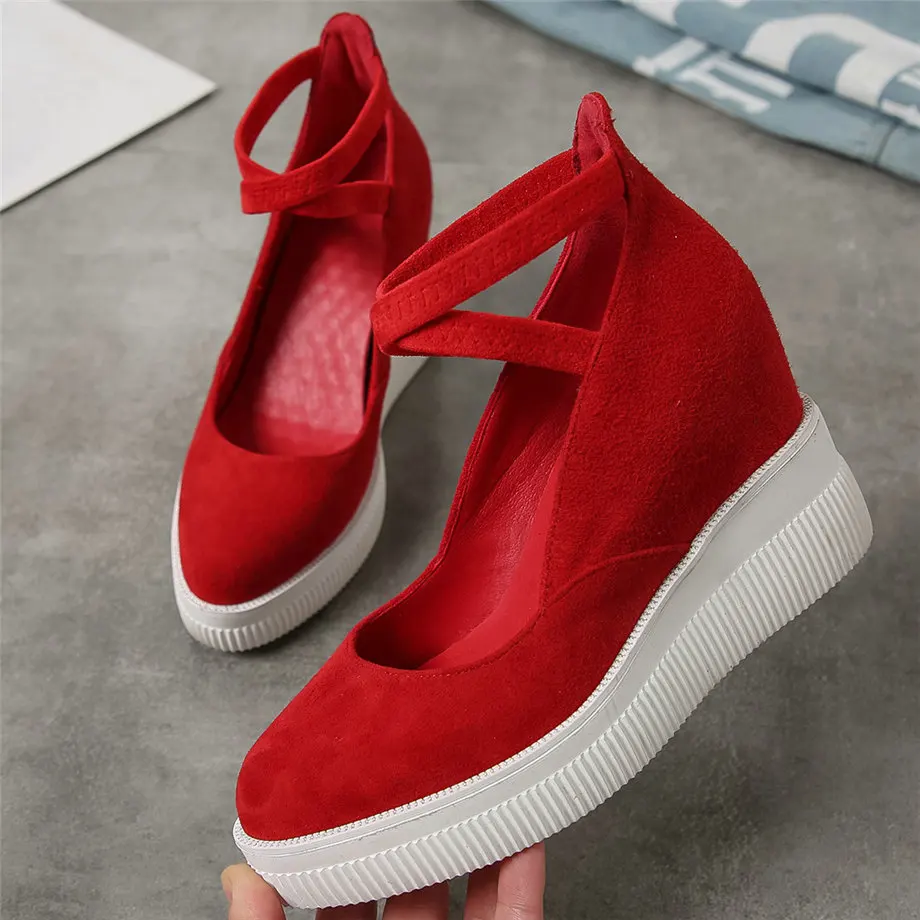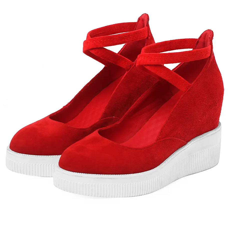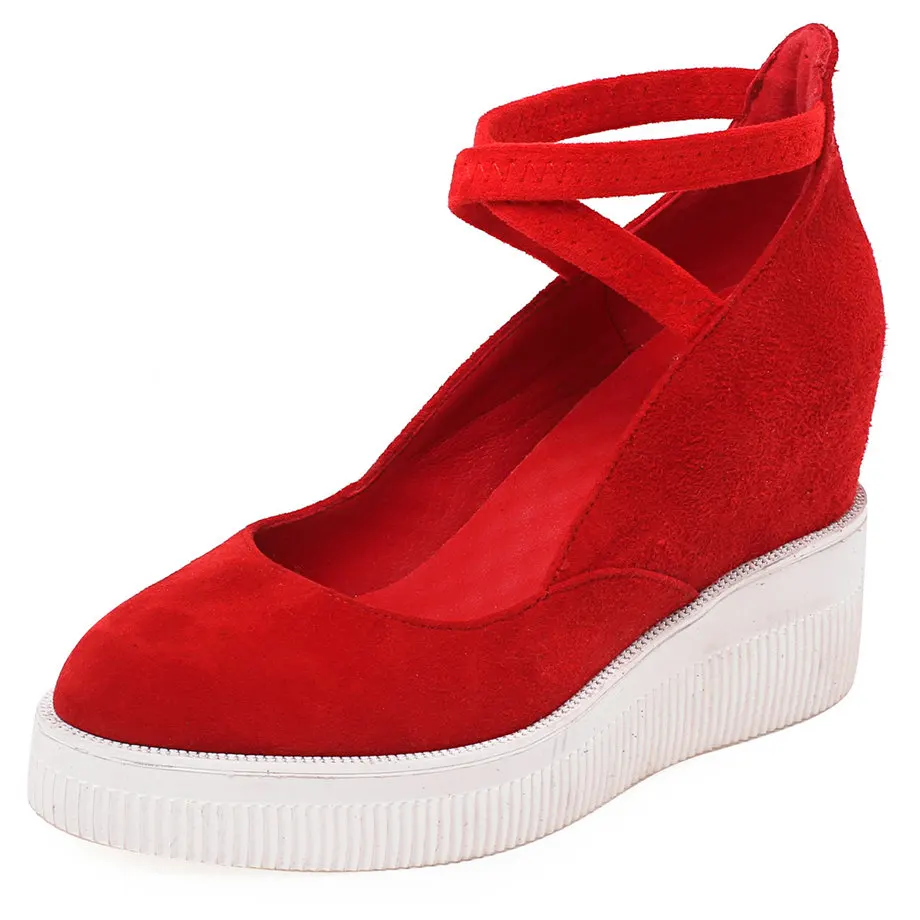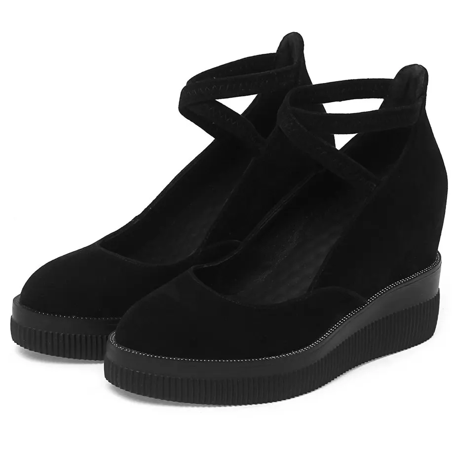 Туфли-лодочки женские из натуральной кожи туфли на танкетке с перекрестным - купить