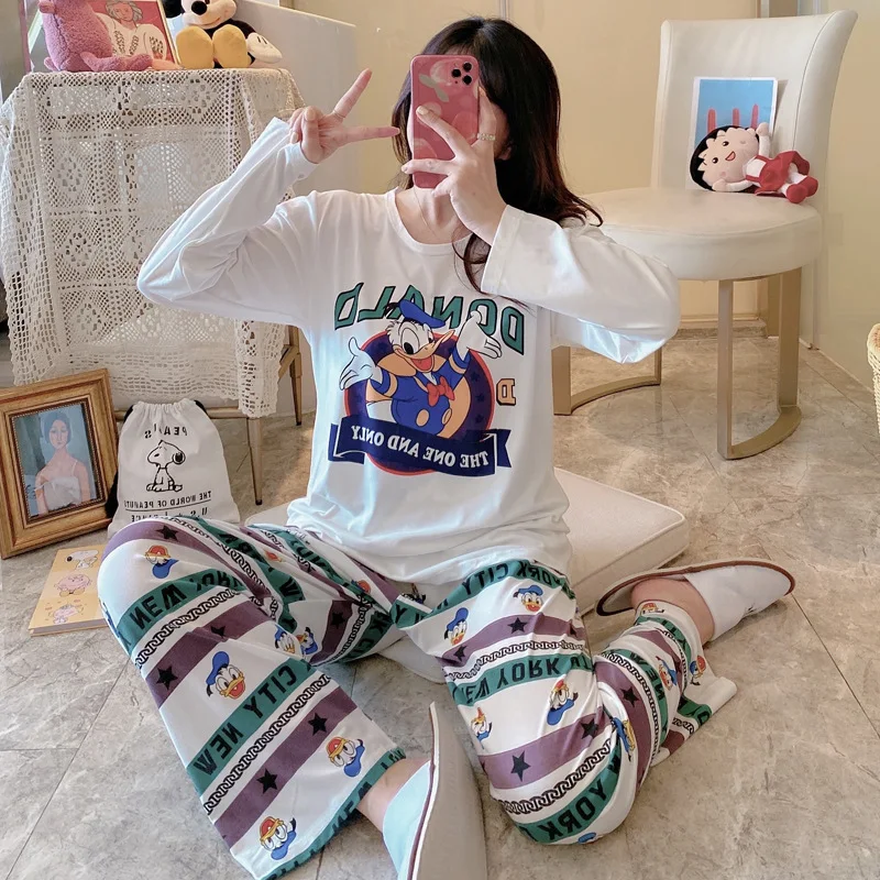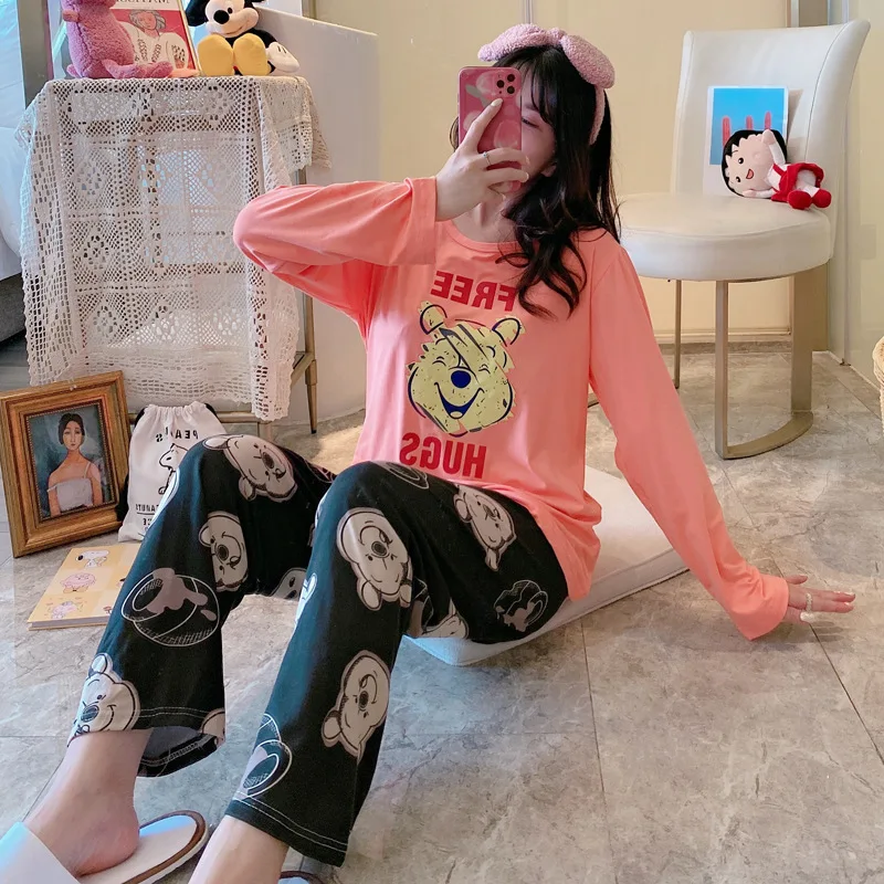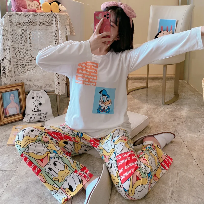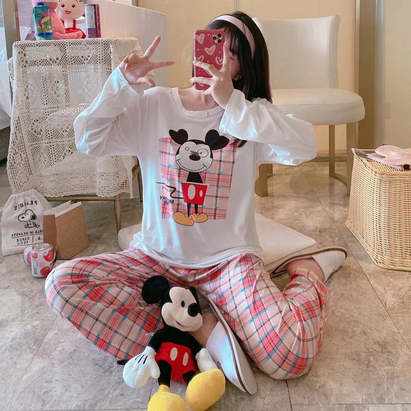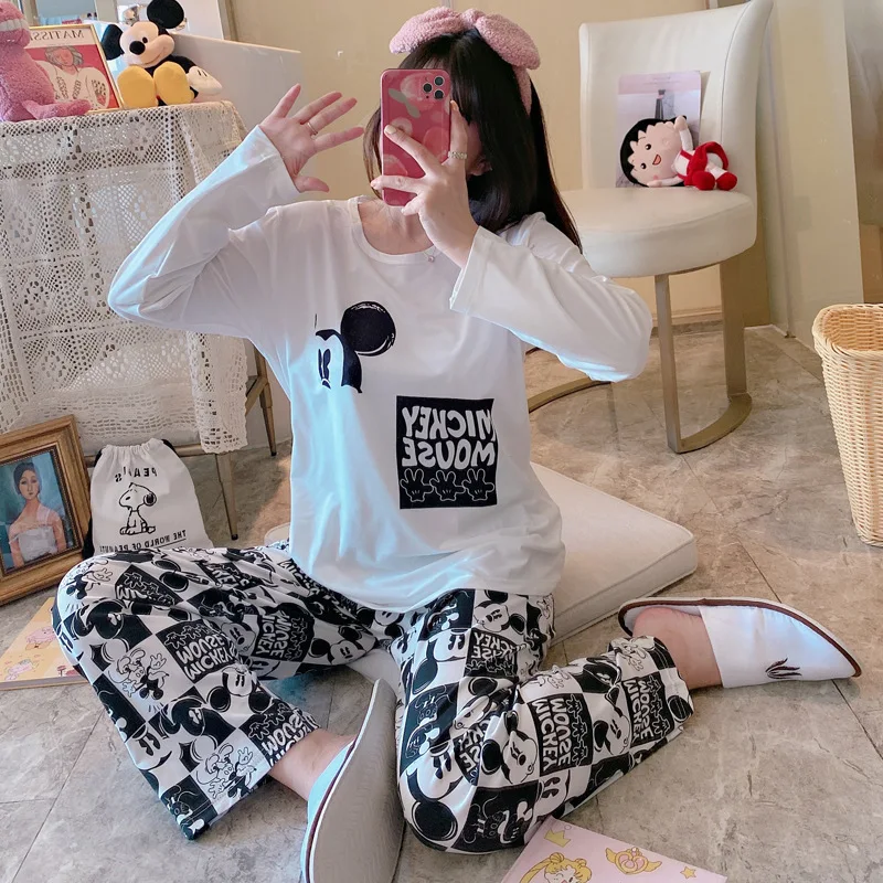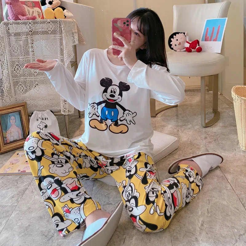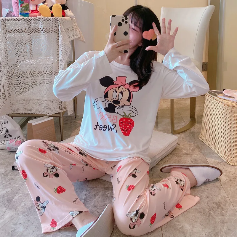 Отзывы о 2 шт. Женский пижамный комплект с длинным рукавом и принтом Минни-Маус Женская