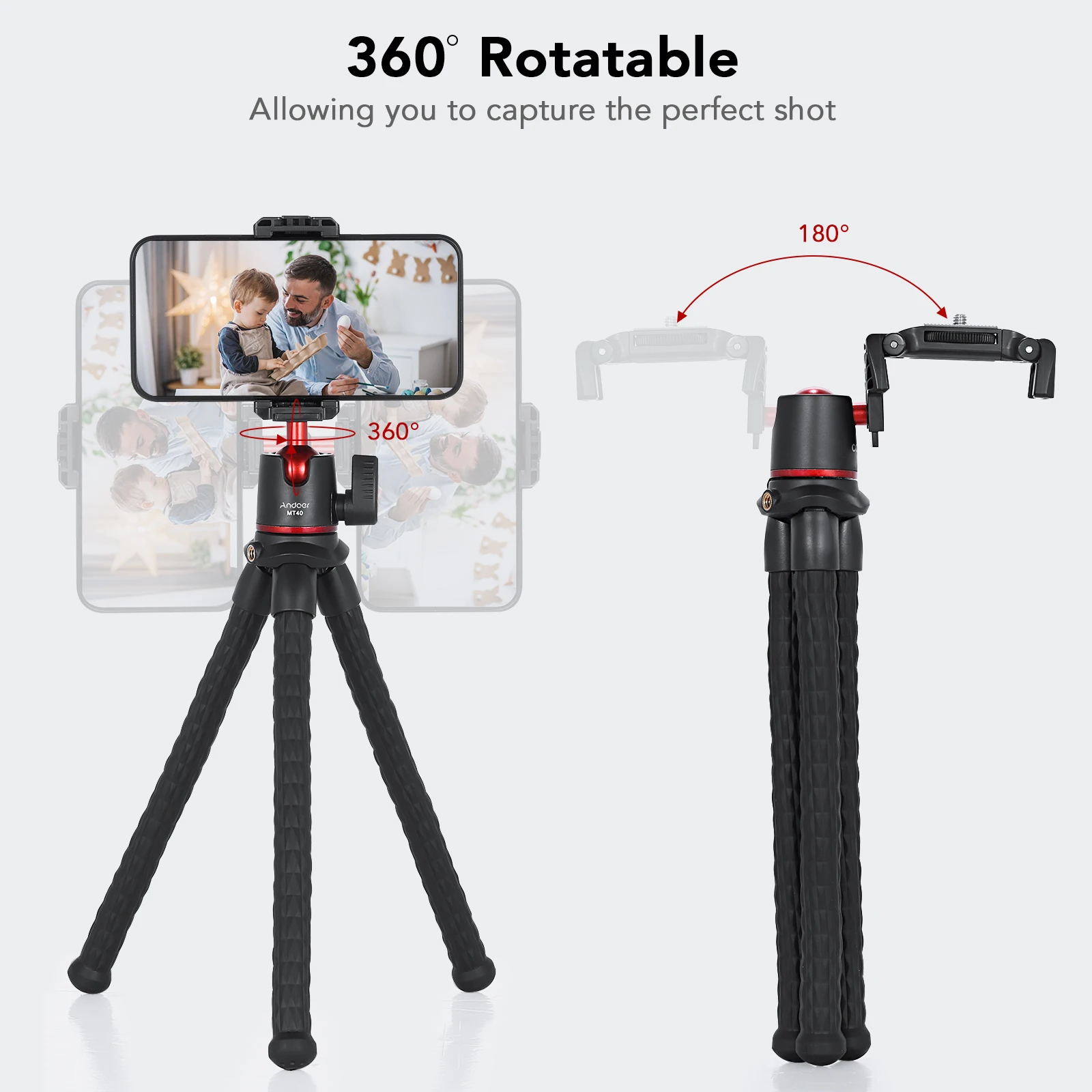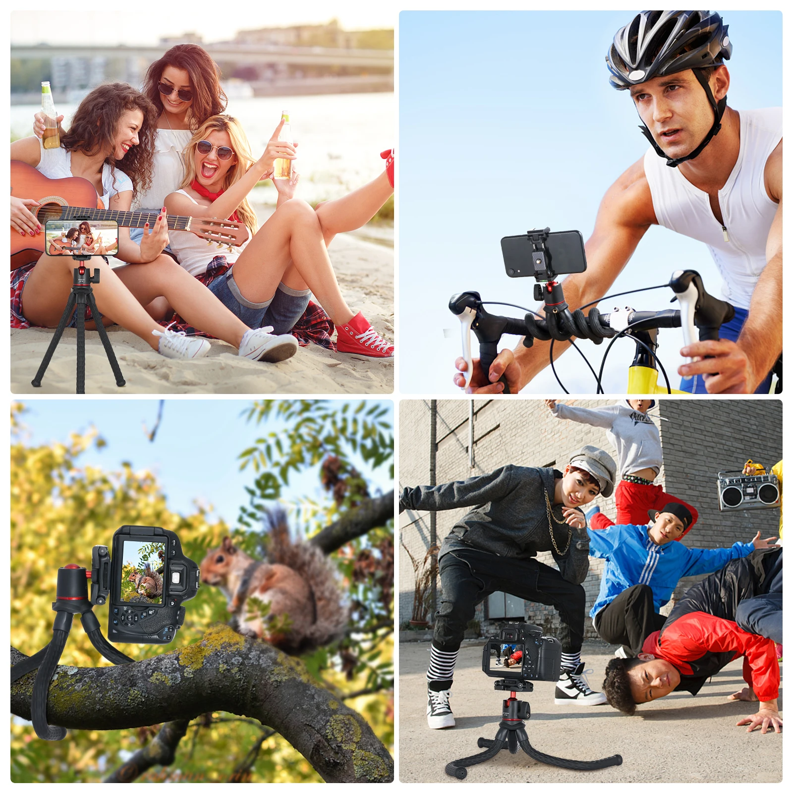 【Гибкий и портативный Трипод Octopus 】Благодаря высокопрочному алюминиевому сердечнику и ножкам с резиновым покрытием высокой плотности гибкий штатив можно легко обернуть вокруг велосипеда, шеста или повесить на дерево, А также может работать как Настольный Штатив для просмотра видео, онлайн-встреч, прямой трансляции и т. д.