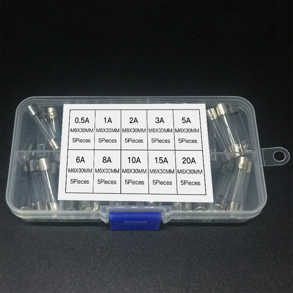 72 шт. 6x30 мм Быстрый Предохранитель стеклянные трубки предохранители в ассортименте смешанный комплект страховая трубка 0.5A/1A/2A/3A/5A/10A/15A/20A/30A
