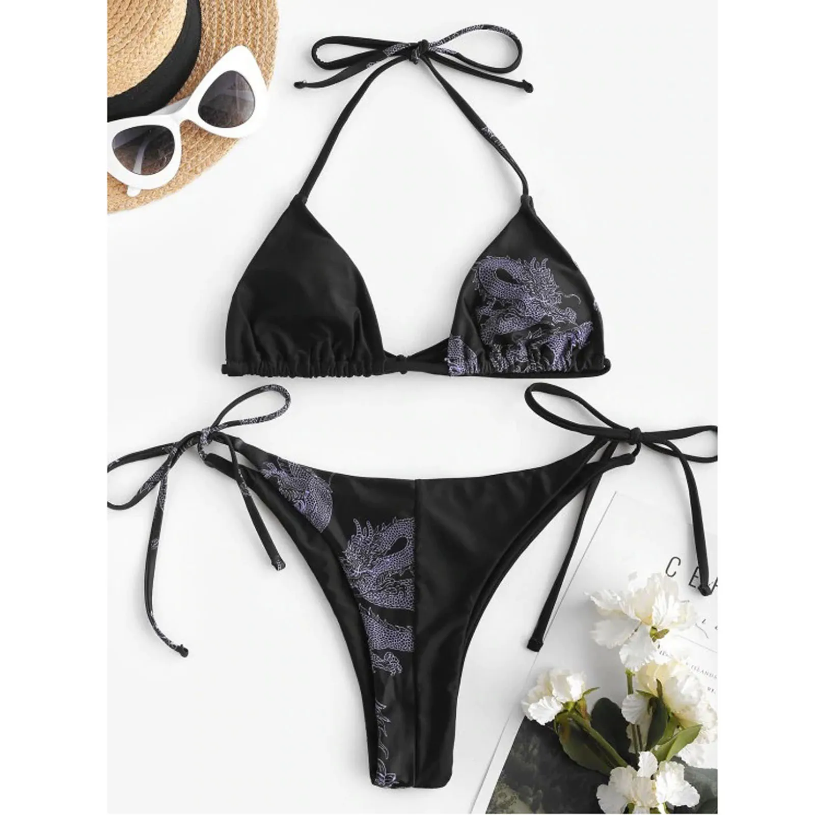 Отзывы о Бикини 2022 Женский бандажный комплект бикини с принтом дракона пуш-ап бразильский