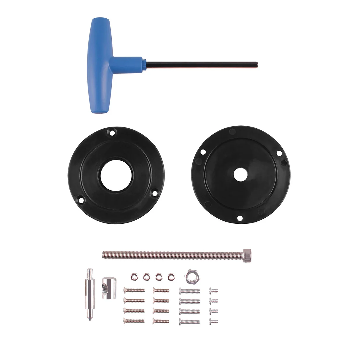 Convenient center-hole bushing used to align the router so it is centered in the bit hole