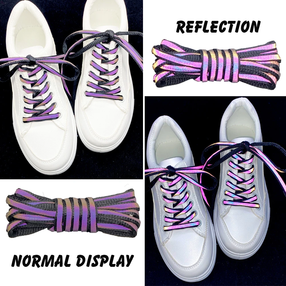 Светоотражающие шнурки, лазерные Шнурки с блестками, Плетеный плетеный браслет, кроссовки для бега, кружевная обувь для взрослых детей, флуоресцентные шнурки для обуви