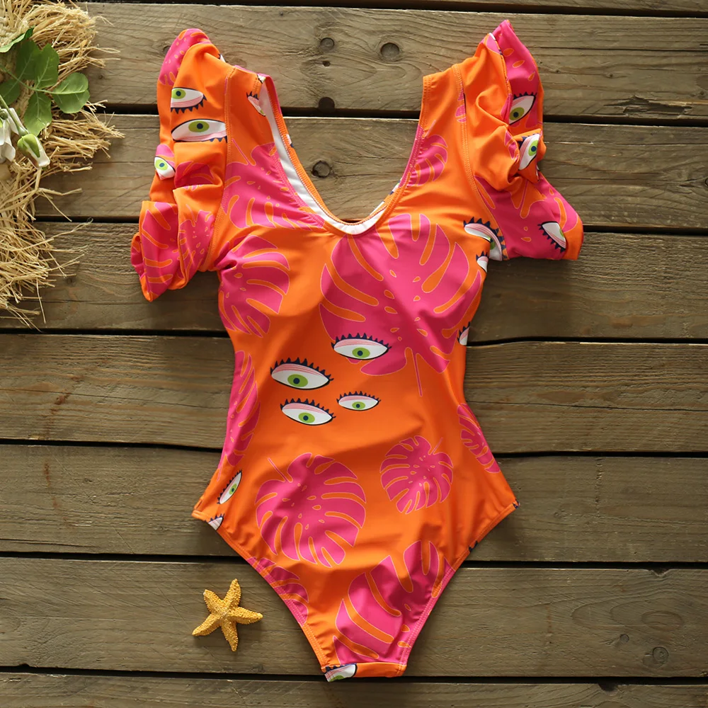 Отзывы о 2021 сексуальный слитный купальник с оборками листьев и глаз женский принтом