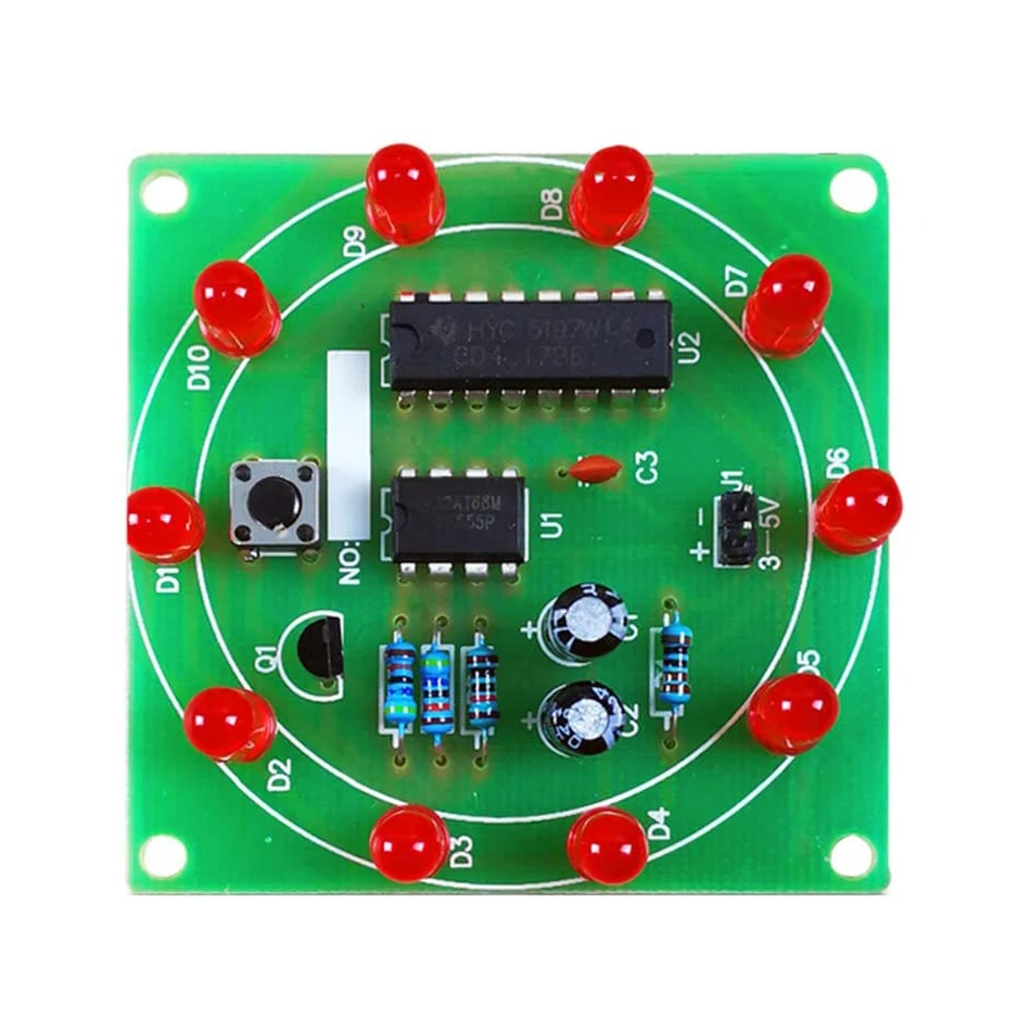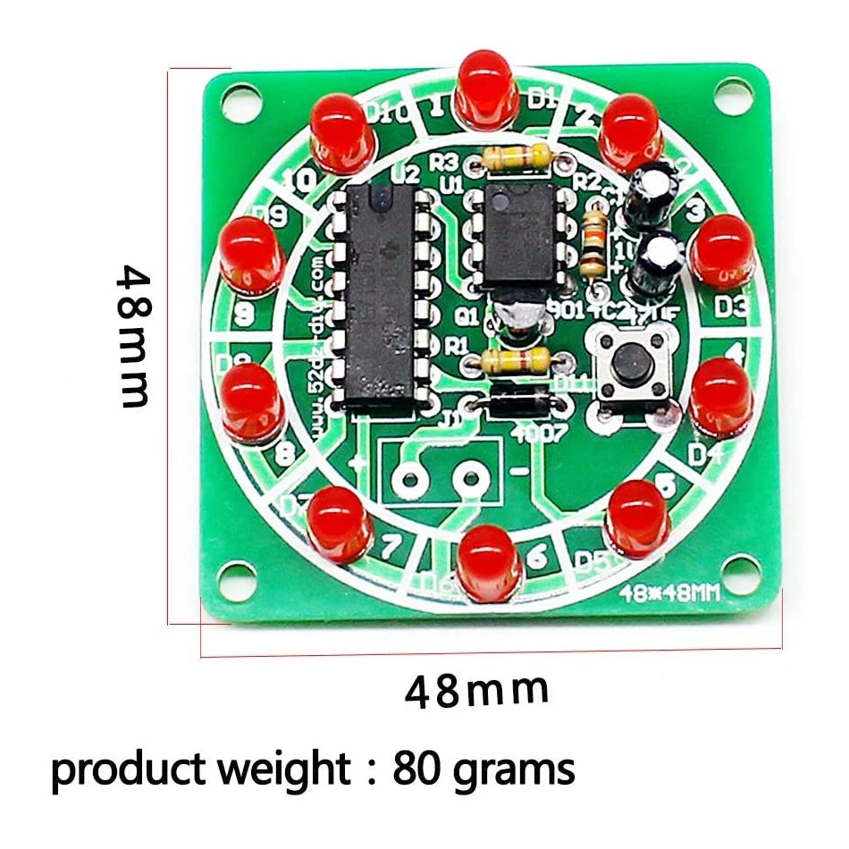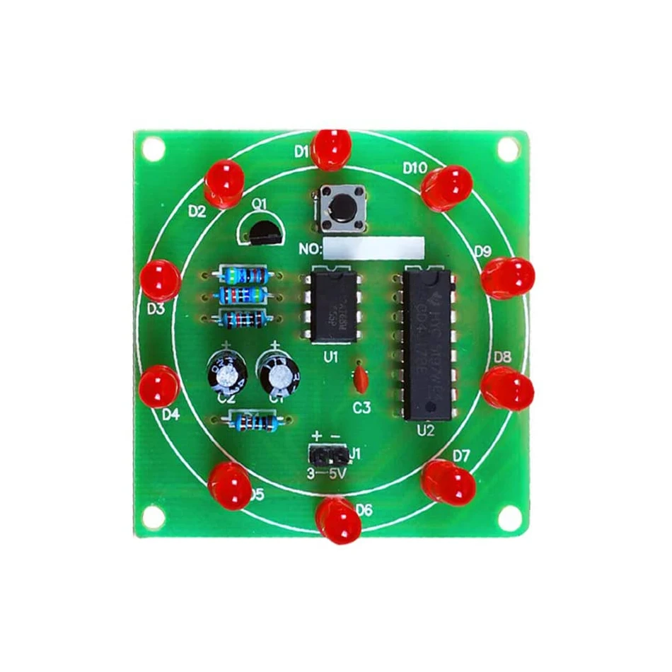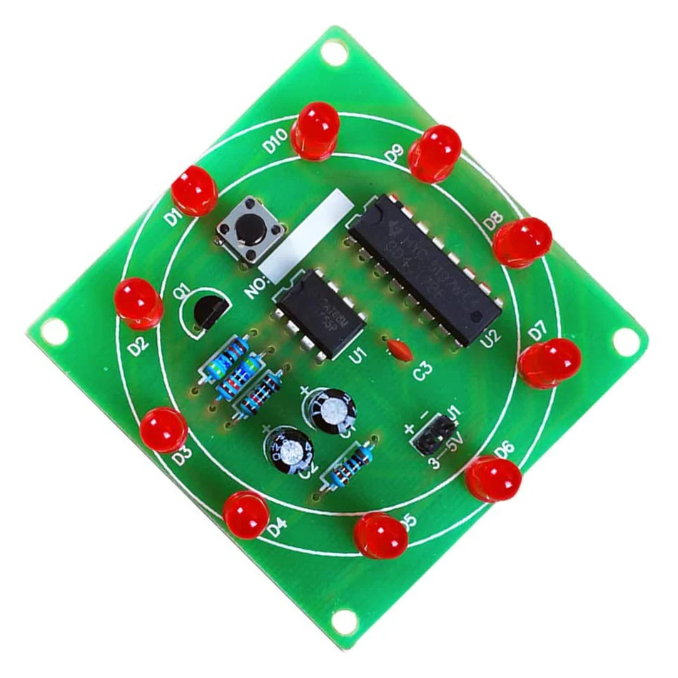 Навыки сварки: резистор не отличает положительные и отрицательные электроды; Длинный штырь конденсатора положительный; Длинный светодиодный штырь положительный; интегральная схема является первым instal светодиодный с гнездом, и чип instal светодиодный после того, как цепь полностью инсталлированный светодиодный. Обратите внимание, что положение чипа устанавливается перед отметкой зазуба печатной платы.