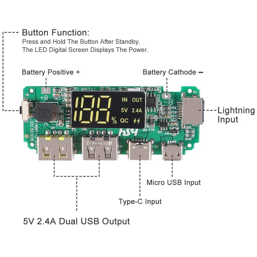 СВЕТОДИОДНЫЙ цифровой экран отображает ток заряда батареи во время зарядки. При разрядке светодиодный цифровой экран отображает Текущее питание, и дисплей сохраняется примерно за 30 секунд (дважды нажмите кнопку, чтобы продолжить отображение). Система обеспечит точную индикацию батареи после полной зарядки и разрядки.