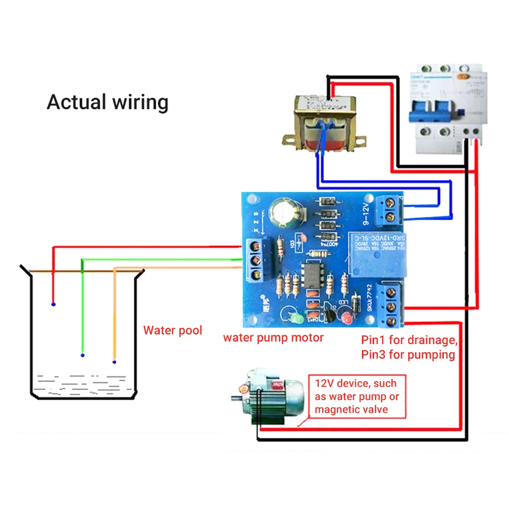Возможность автоматического включения переключателя водяного насоса при снижении уровня воды и остановке при заполнении водного бассейна.