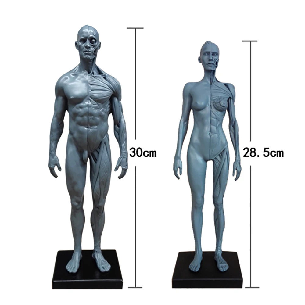 Название продукта: модель структуры человека Материал: полиуретановая смола Цвет: серый Масштаб модели: 1:6 Высота модели: мужской 30 см, 28,5 см Использование: живопись скульптуры справки, медицинские справки, учебная справки и т. Д.