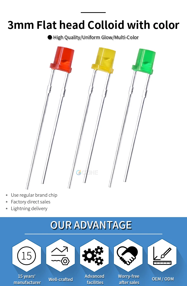 Отзывы о 1000 шт./пакет светодиодный Диод 3 мм плоская верхняя желтая зеленая красная линза