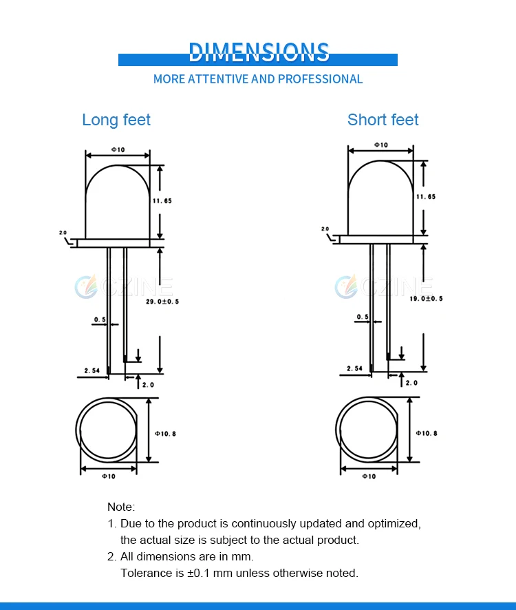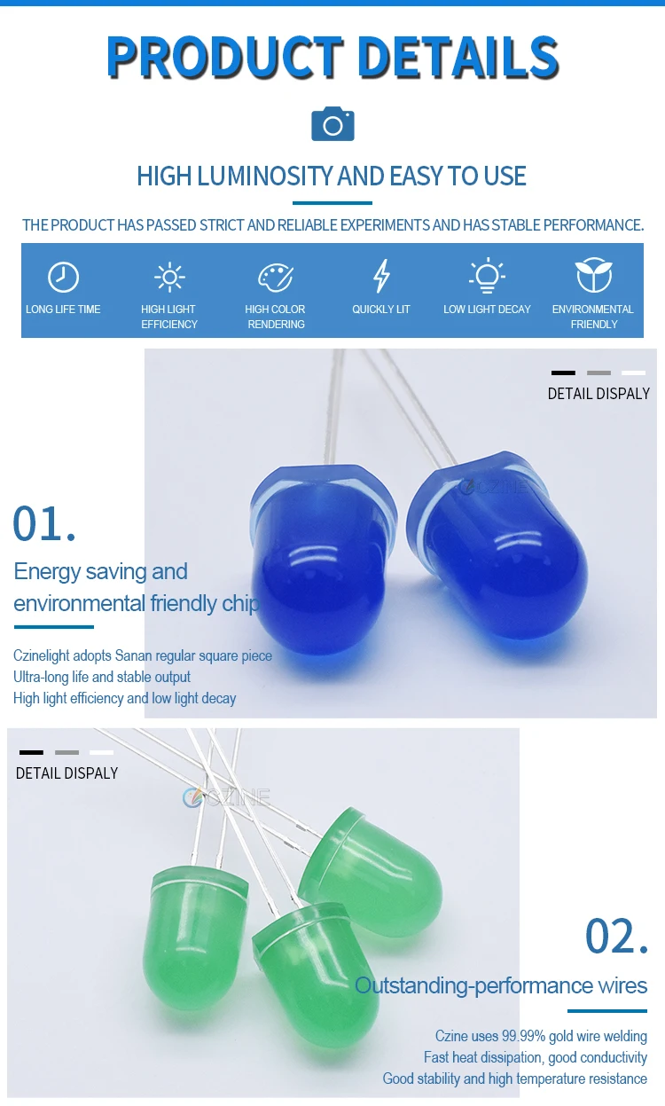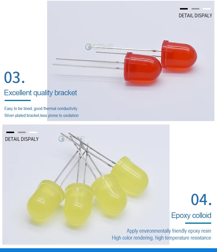 Отзывы о Светодиодный Диод для светосветильник индикатора 10 мм Круглый красный синий