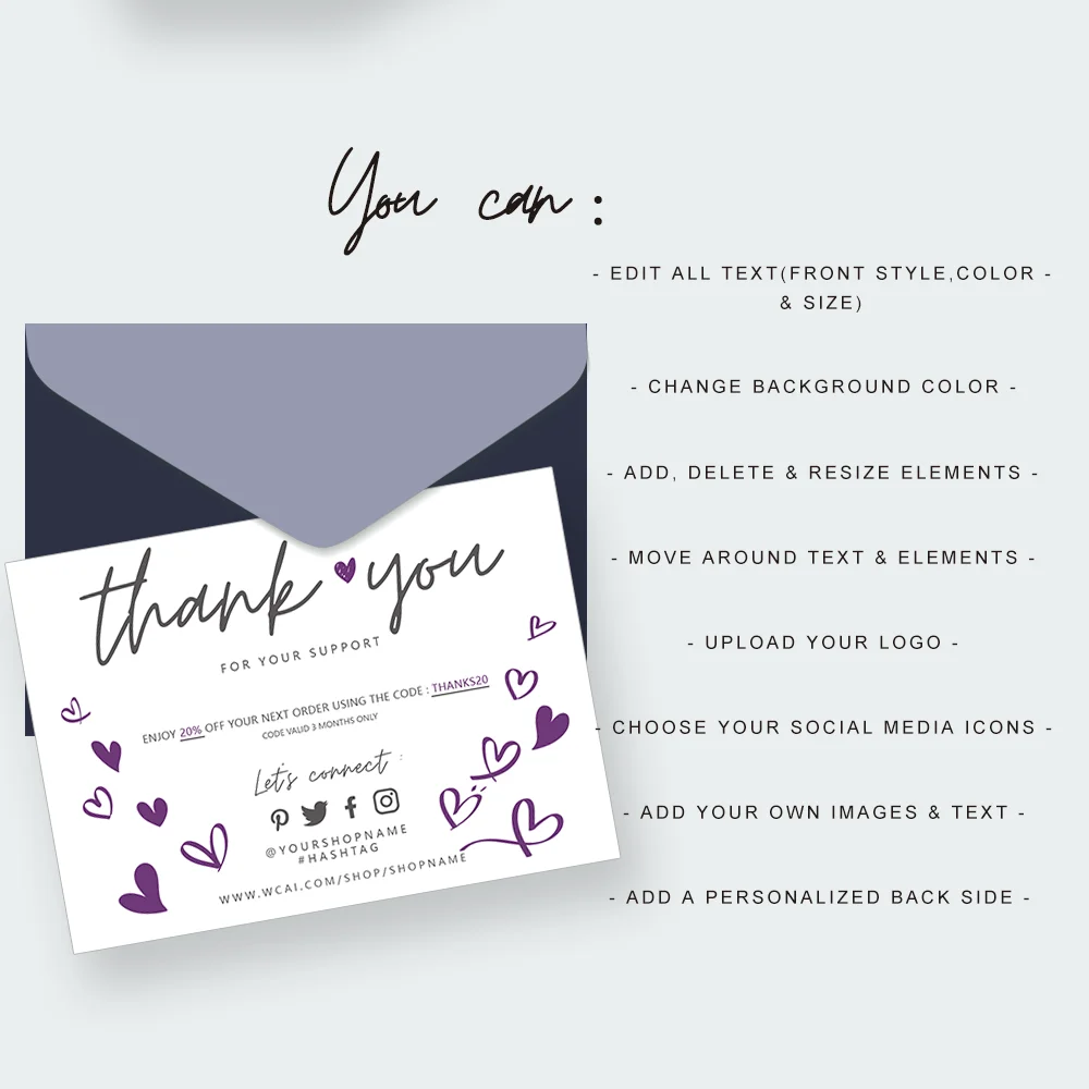 ОписаниеДвусторонний шаблон благодарности с сердцем, спасибо за ваш заказ карты для малого бизнеса, онлайн-бизнес спасибо за посылка