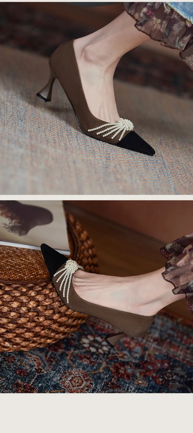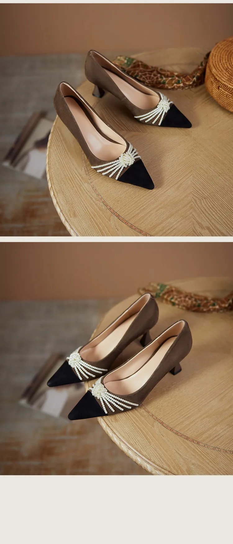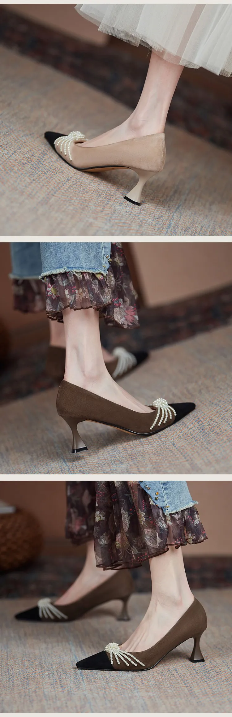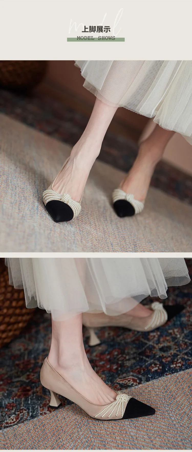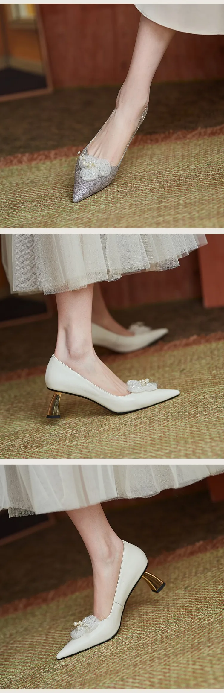 Купить Luxury women's shoes 2021 new spring pointed high heels stiletto pearl wedding bridesmaid dress |