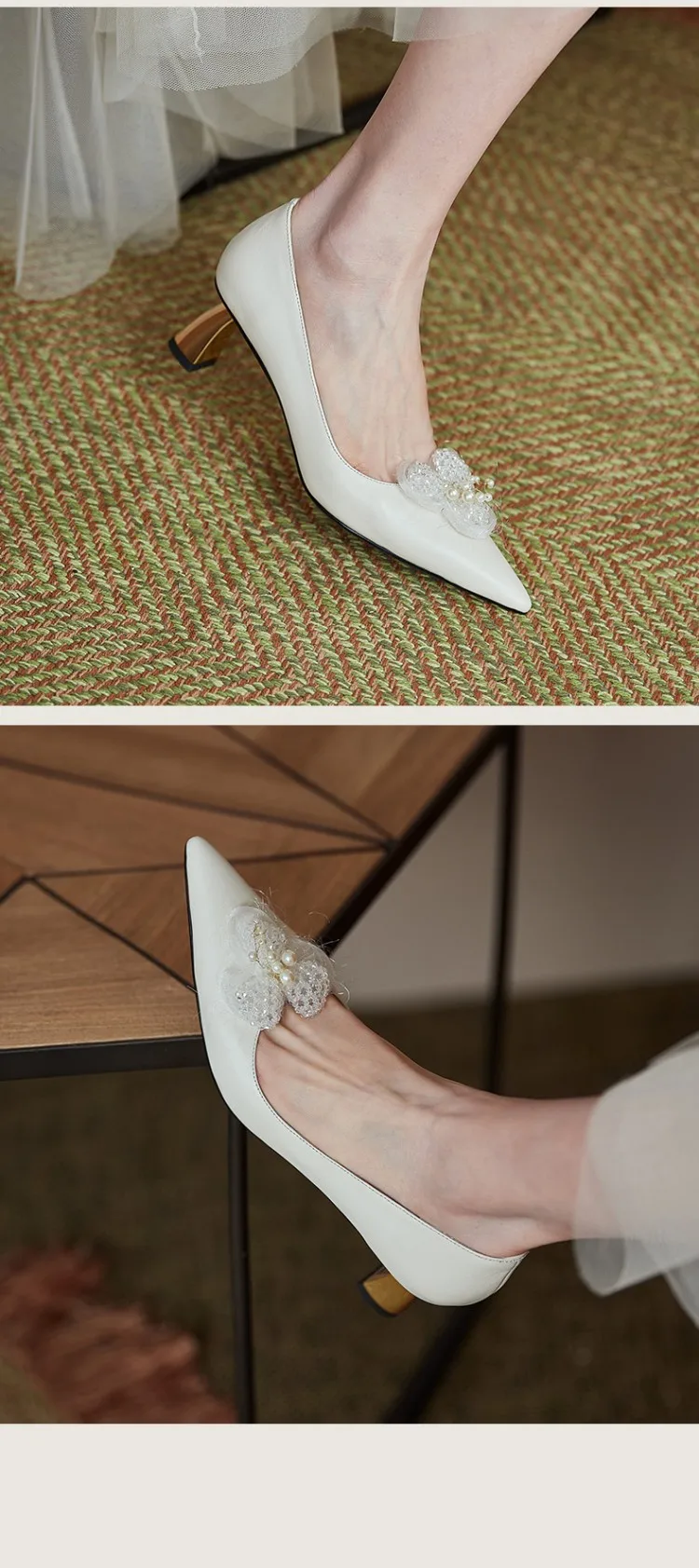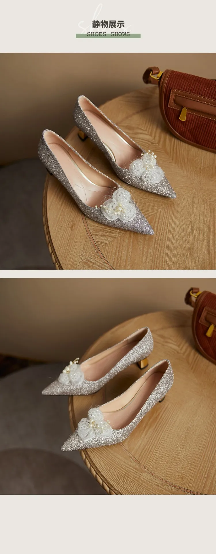 Отзывы о Luxury women's shoes 2021 new spring pointed high heels stiletto pearl wedding bridesmaid dress