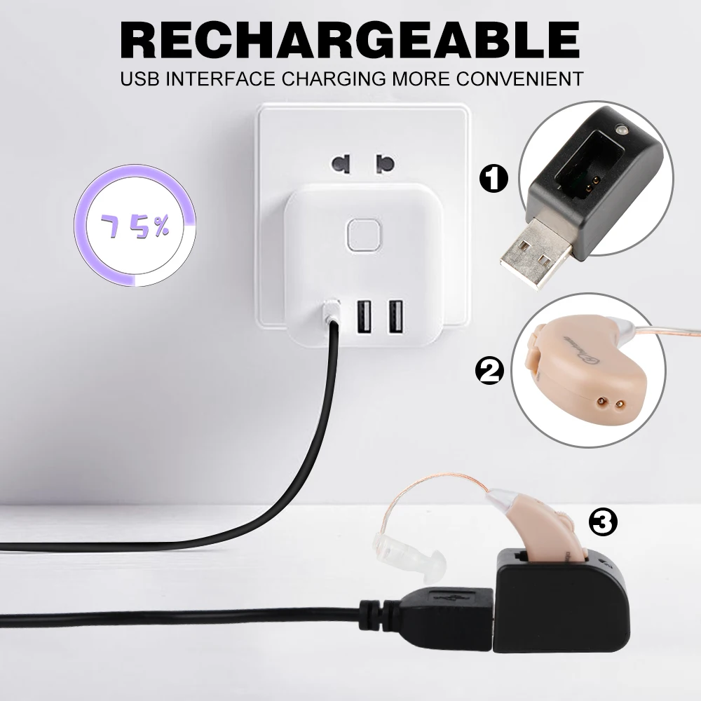 Слуховой аппарат не включает зарядную головку, включает только usb-зарядную базу, пожалуйста, заряжайте его с помощью адаптера телефона.